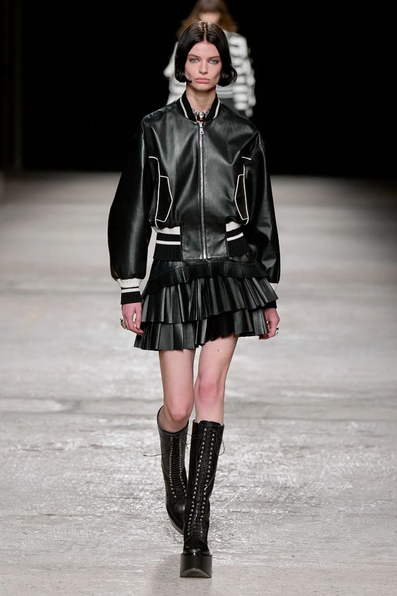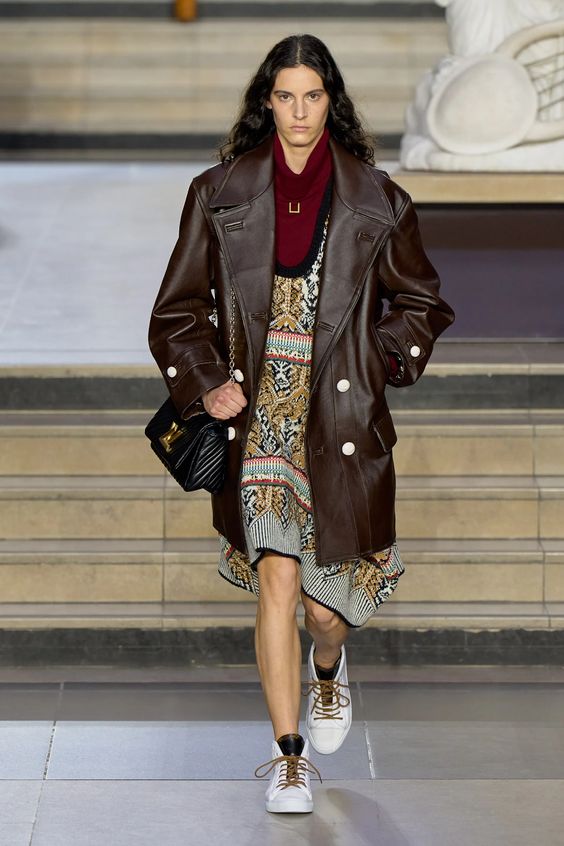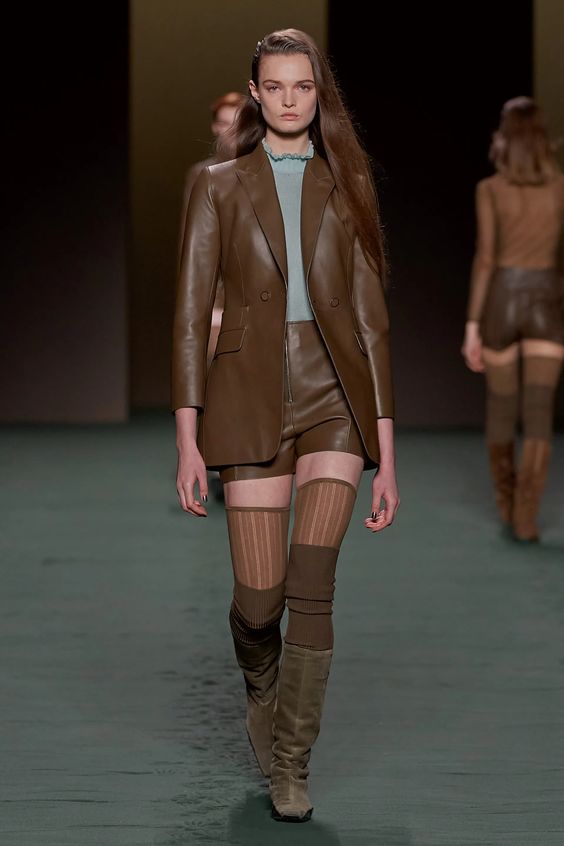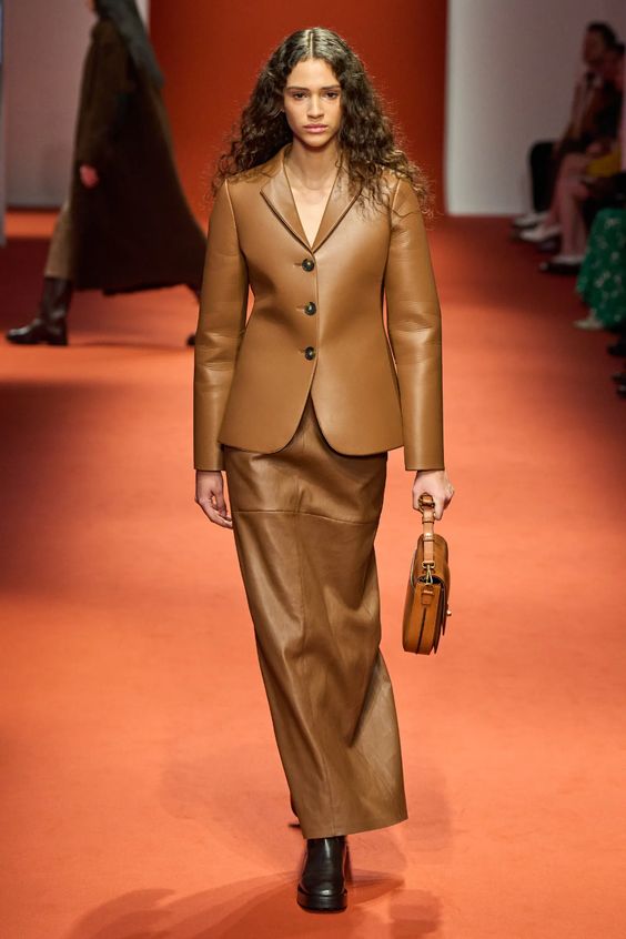 Skórzane ubrania to inwestycja, dlatego niemal nie schodzą one z wybiegów. Kurtka, spodnie czy płaszcz ze skóry są elementami, które świetnie się starzeją i pozostają modne mimo zmieniających się trendów. Łącz skórę z materiałami o kontrastującej fakturze, na przykład dzianiną dla większego efektu. Stawiaj na naturalne kolory ziemi, czerń lub bordo.