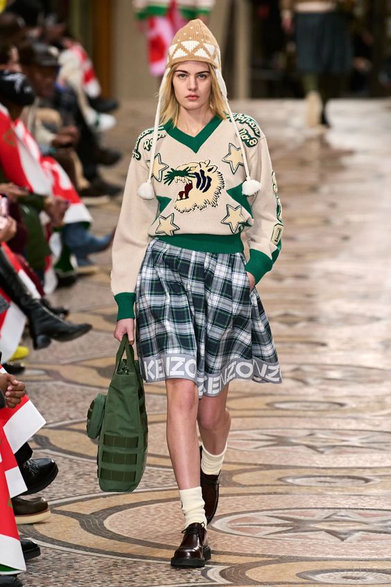 Powrót do szkoły zwiastuje też nowy trend zwany roboczo „New School”. Polega on na zinterpretowaniu elementów szkolnego mundurka w zupełnie nowy sposób. Plisowane spódniczki, swetry w romby, koszule i marynarki nie są już grzeczne i odprasowane jak w popularnym kilka lat stylu preppy – efekt ma być nonszalancki i nieco niedbały. W tym trendzie ogromną rolę grają akcesoria: podkolanówki, mokasyny, luźno zawiązany krawat, beret lub czapka z daszkiem nadają całości buntowniczego charakteru.