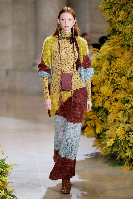 Parafrazując klasyka: Dzianina? Na jesień? Bardzo odkrywcze! Nie mamy jednak na myśli nudnych swetrów i kardiganów, lecz dzianinowe total looki: sukienki maksi, spódnice i spodnie, noszone warstwowo z długimi swetrzyskami i tunikami. Na wybiegach pojawiło się mnóstwo propozycji nawiązujących do stylu boho: ciepłe kolory, frędzle, trójwymiarowe aplikacje i motywy czerpiące z natury.