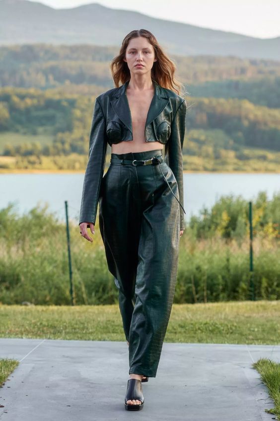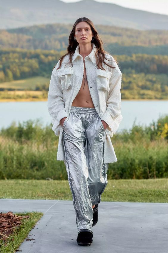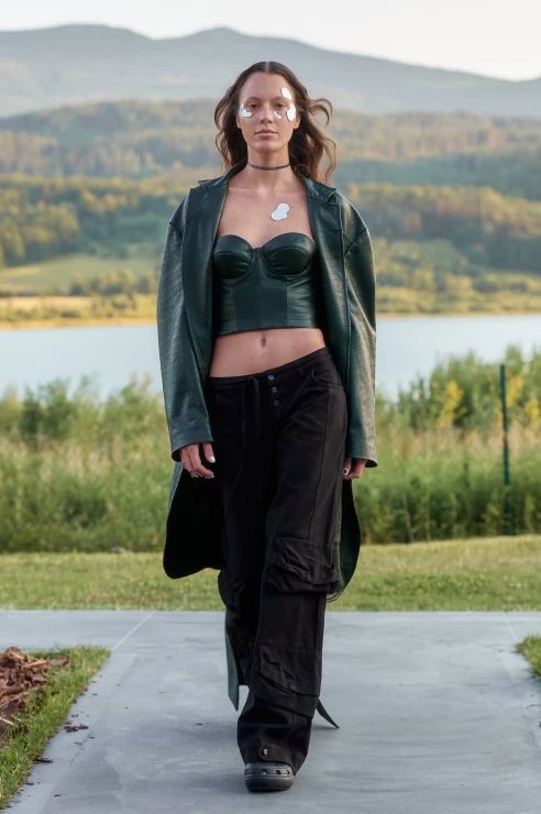 MMC postawiło również na kilka silnych trendów nadchodzącego sezonu. Są to między innymi parachute pants, czyli inspirowane klasycznymi bojówkami spodnie „spadochronowe”, tutaj dodatkowo w metalicznym srebrnym wydaniu; skórzane gorsety czy niski stan spodni i spódnic, nawiązujący do mody y2k. Całość prezentuje się niezwykle spójnie i harmonijnie, z zachowaniem DNA marki i szacunkiem do miejsca, w którym odbył się cały spektakl.