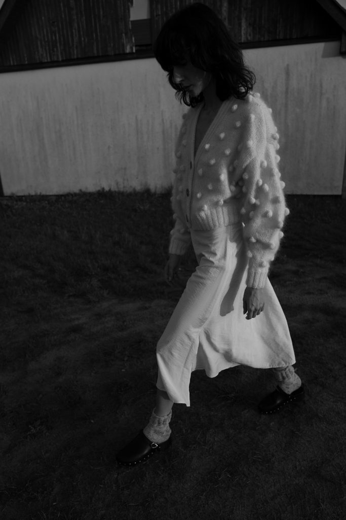 Wiejski domek, wokół lasy i łąki, niczym niezmącony spokój oraz długie spacery z psem – w takiej scenerii powstały zdjęcia nowej kolekcji dzianin Bereniki Czarnoty. Modelka, prywatnie także przyjaciółka projektantki, wystylizowała nowe swetry i akcesoria, łącząc je ze swoją własną garderobą.