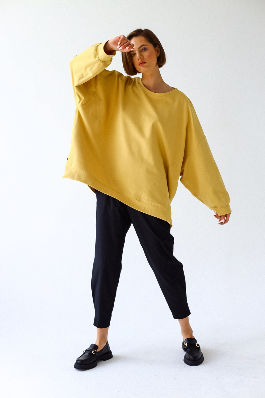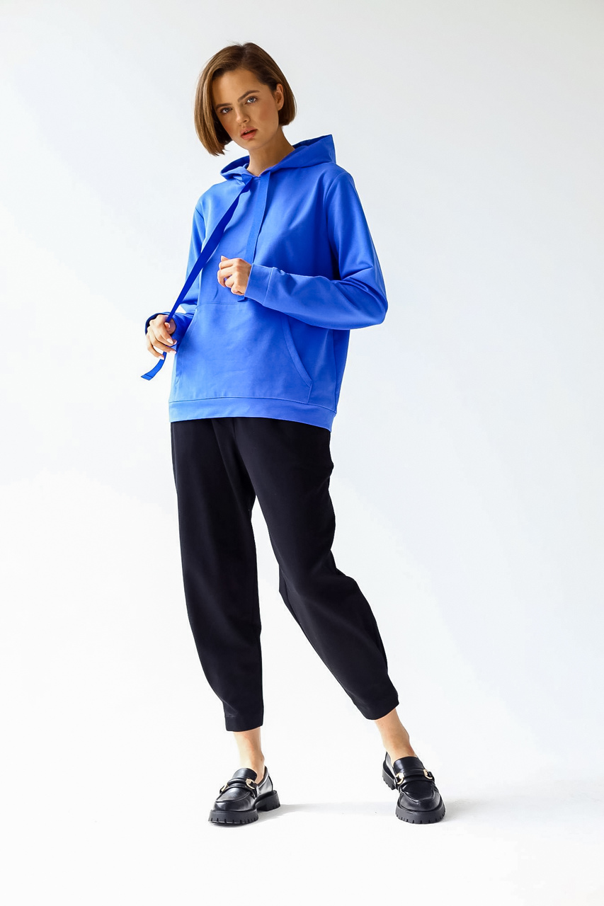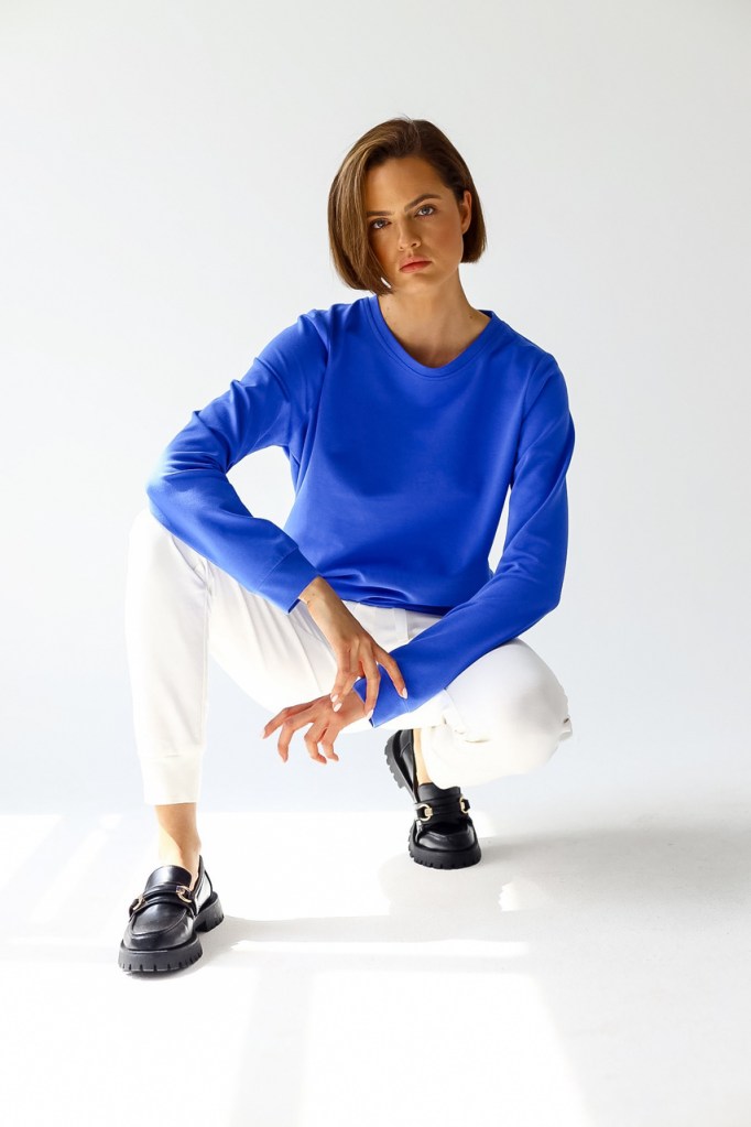 Spodnie dresowe wykonane są z mięsistej dzianiny bawełnianej, która zapewnia jakość i świetny wygląd przez kilka sezonów. W kolekcji oprócz gładkich ubrań w energetycznych kolorach takich jak kobaltowy niebieski czy musztardowa żółć (oba kolory będą bardzo popularne nadchodzącej wiosny), klasycznej czerni i śmietankowej bieli, pojawiły się pastelowe geometryczne wzory. Zdobią one narzutki o kroju poncza, fantastycznie urozmaicające jesienną garderobę. Obecne są także klasyczne czarno-białe paski.