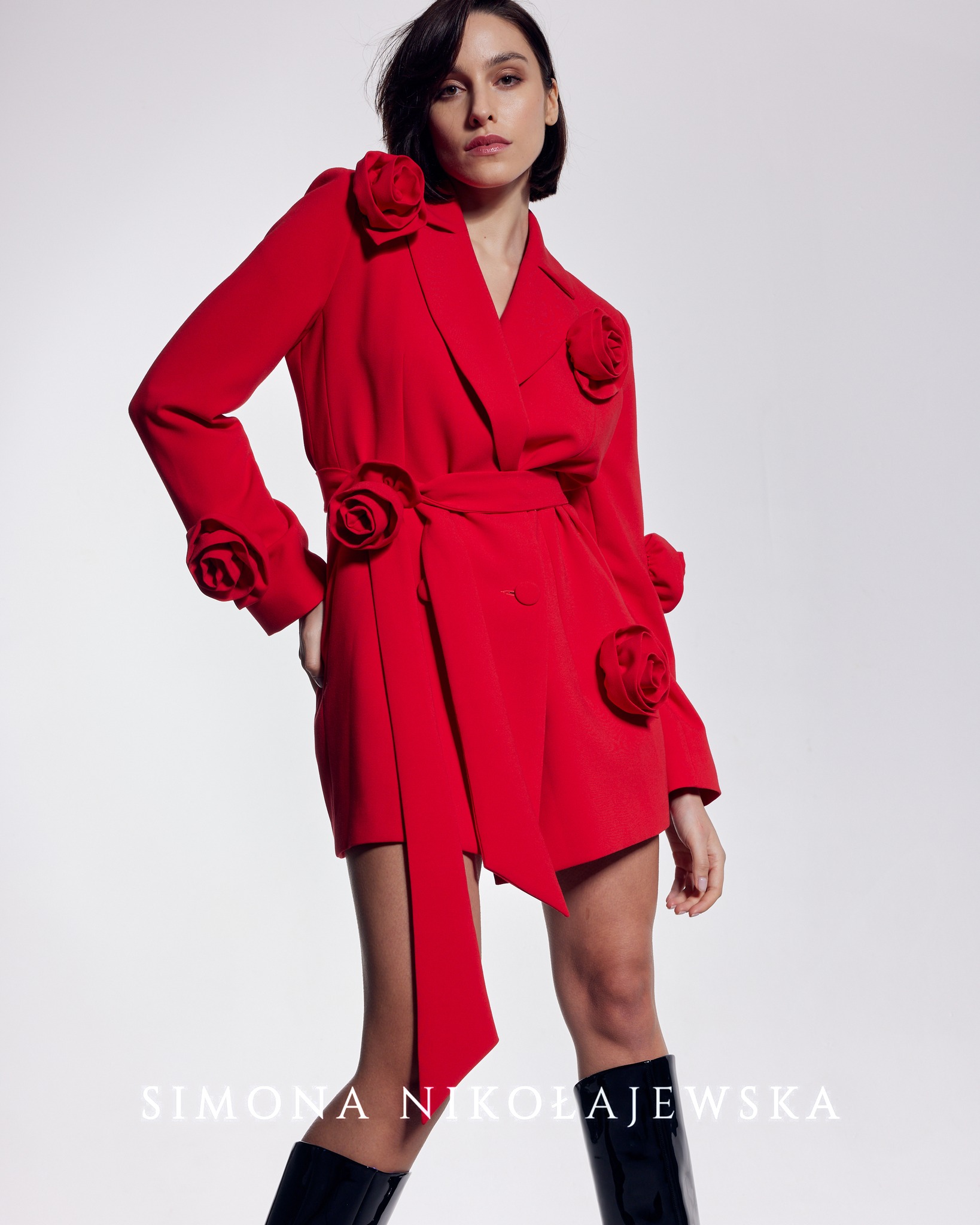 Trójwymiarowe kwiatowe aplikacje to jeden z silniejszych trendów tej jesieni. Pojawiły się na wybiegach u Schiapparelli, Valentino czy Blumarine, od kilku lat ich wierną fanką jest też polska projektantka Magda Butrym. Nieodmiennie kojarzą nam się jednak z projektami Yvesa Saint Laurenta z lat 80. W tym sezonie Simona Nikołajewska sięga po motyw ręcznie układanych róż i umieszcza je, zamiast ukochanych kokard, na marynarkach i sukienkach.
