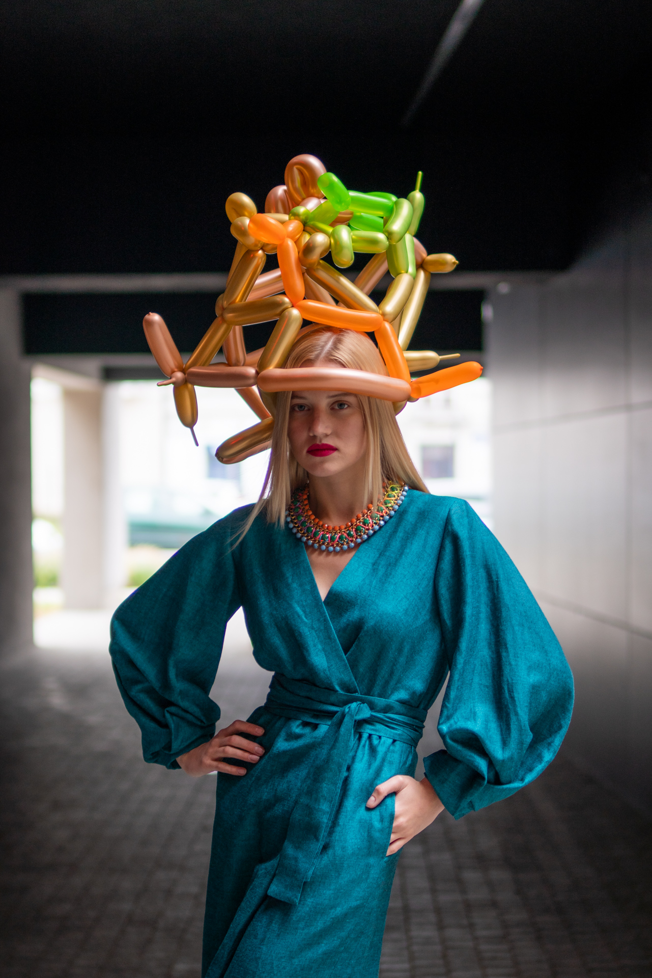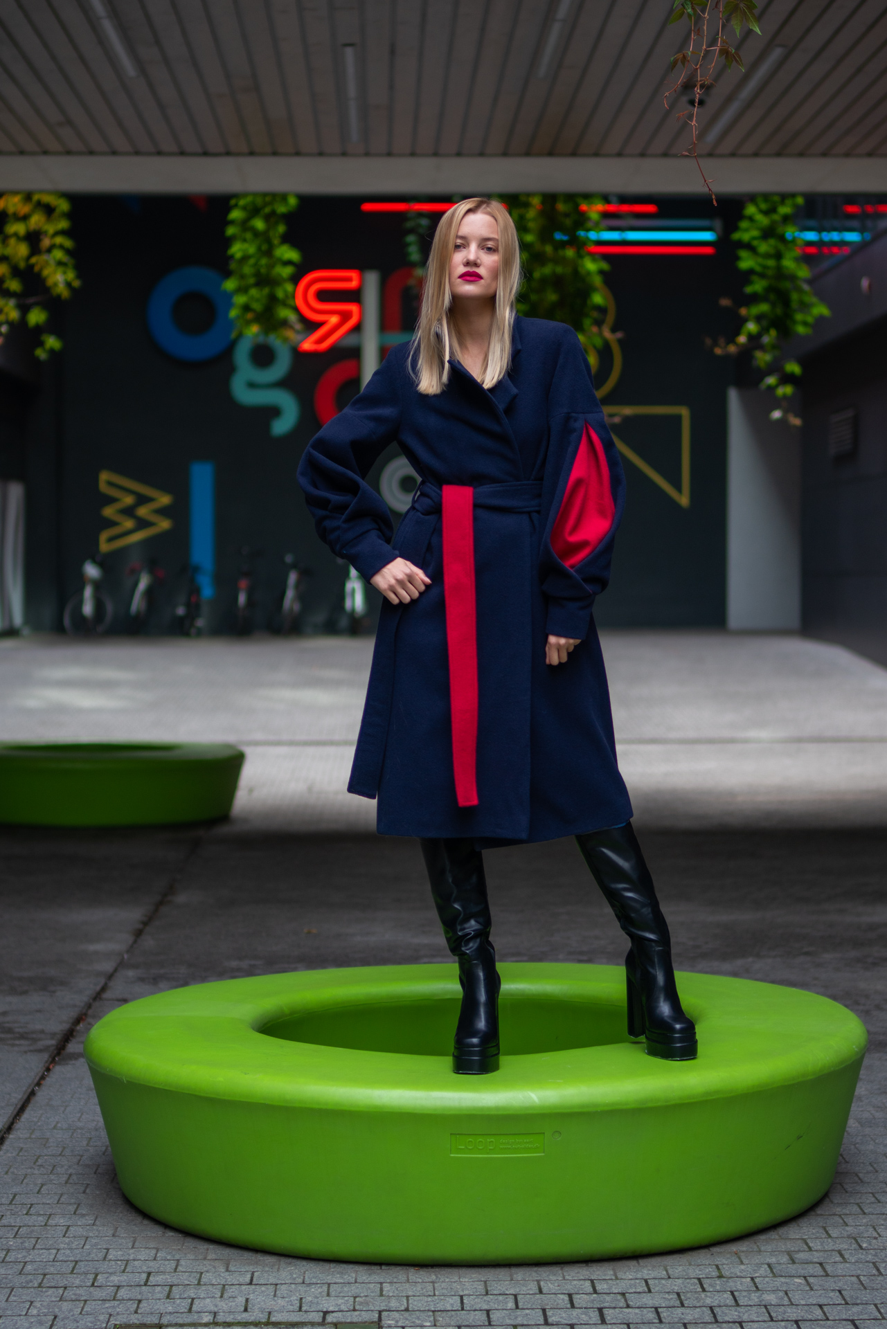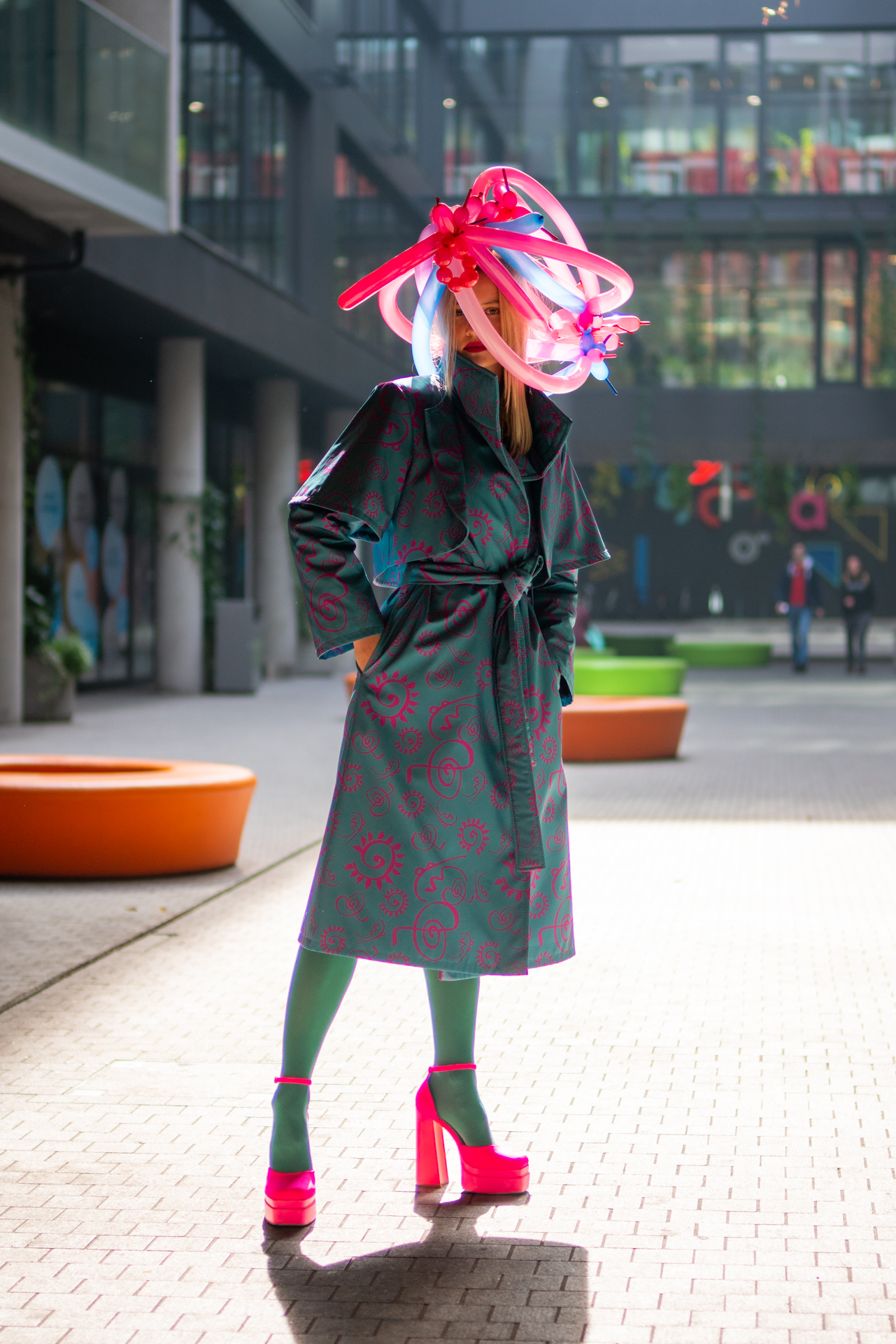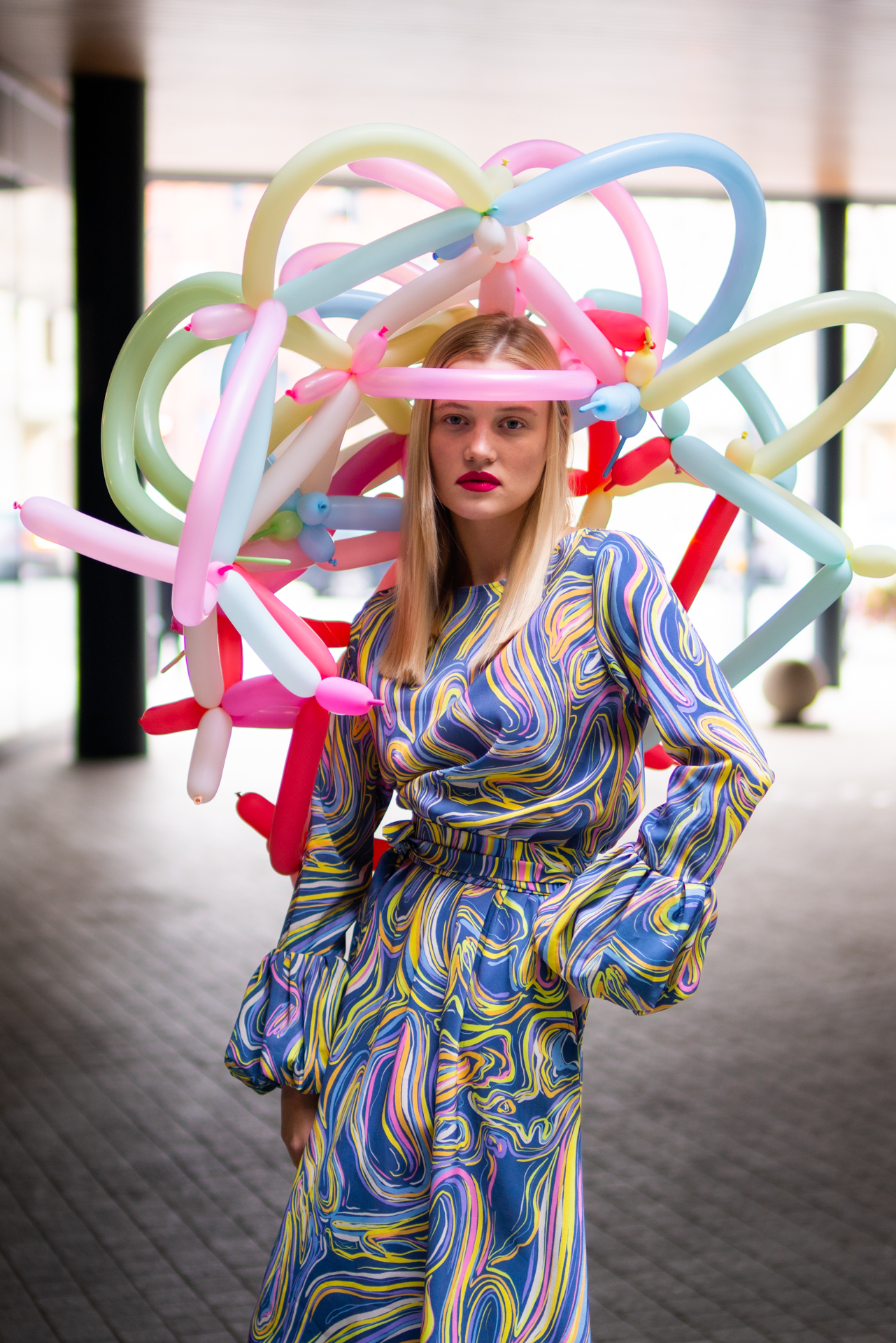 Kolekcja na jesień i zimę zawiera w sobie wszystkie te elementy. Efektowne płaszcze o klasycznym szlafrokowym kroju z pęknięciami na rękawach w kontrastowym kolorze, trencze z graficznymi nadrukami, kraciaste spodnie typu culottes zestawione z koszulami z nadrukiem w stylu lat 70., sukienki w psychodeliczny wzór z bufiastym rękawem czy wreszcie grzeczne komplety z tkaniny boucle (czy to subtelne nawiązanie do nazwy marki?). A wszystko to zestawione na przekór z ciężkimi butami na masywnej platformie, kolorowymi rajstopami i akcesoriami… z balonów.