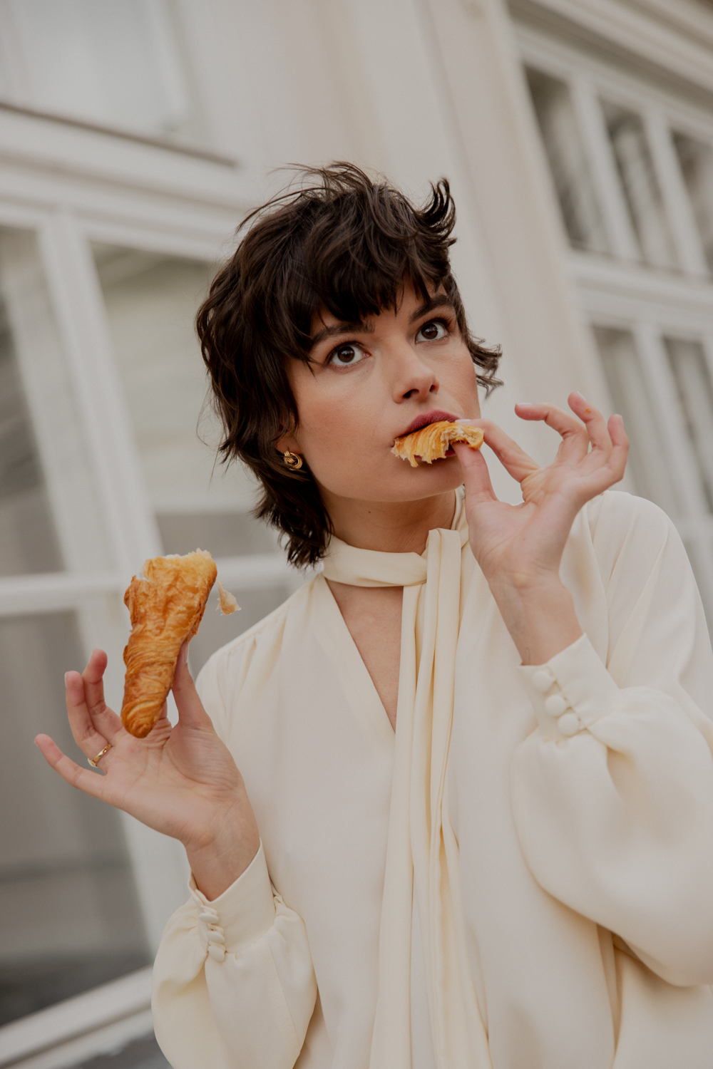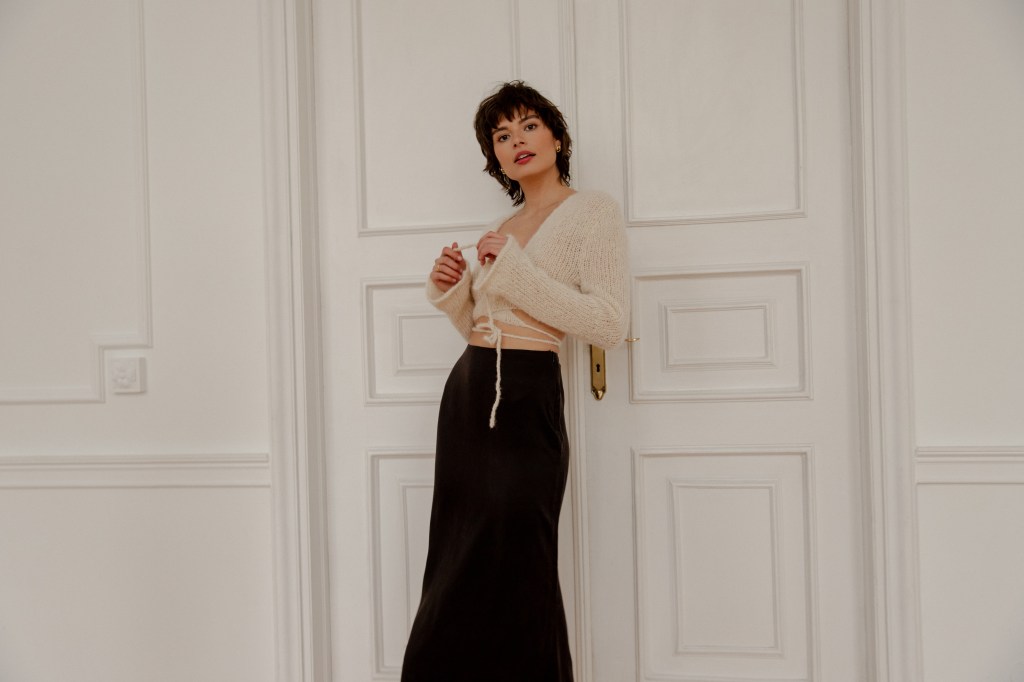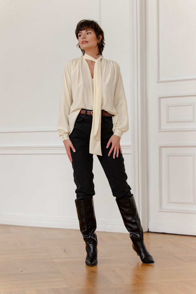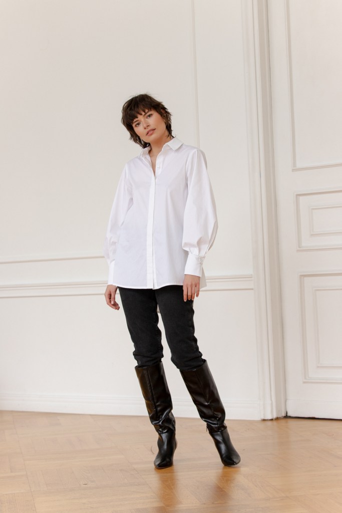 Nie mogło zabraknąć jedwabnych koszul, z których słynie marka – romantyczne lekko bufiaste rękawy, dekoracyjne guziczki powlekane tkaniną oraz marszczenia to kwintesencja francuskiej elegancji. Wśród nowości znalazła się też klasyczna biała koszula z bawełny, o przeskalowanym kroju i lekko bufiastych rękawach, a także nieodzowne jesienią i zimą miękkie i ciepłe swetry z alpaki w kolorze czerni i beżu, ręcznie dziergane przez certyfikowaną rękodzielniczkę.