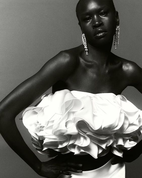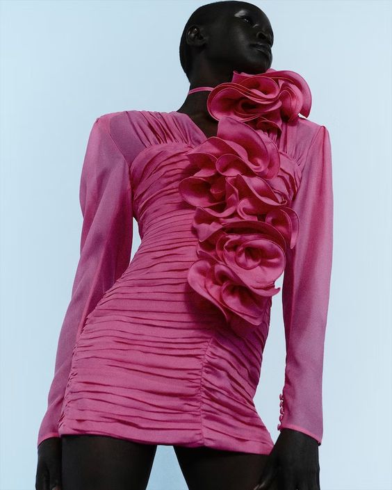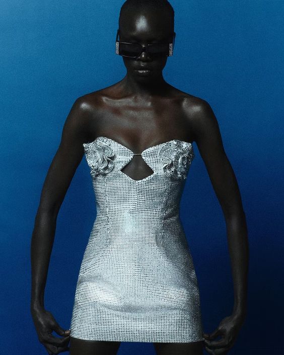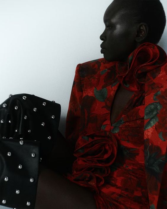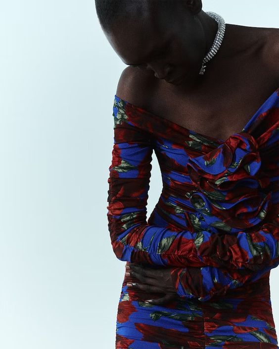 Wiszące kolczyki i kolie z mieniących się kryształów, ultra krótkie, drapowane sukienki z wycięciami, trójwymiarowe marszczenia formujące się w kwiaty, futra XXL – dużo tutaj wspólnych mianowników dla lat 80. i estetyki y2k, która również czerpała z tamtej dekady. Magda Butrym po raz kolejny udowadnia, że te dwa okresy w modzie nadal potrafią inspirować, a także doskonale ze sobą współgrają.