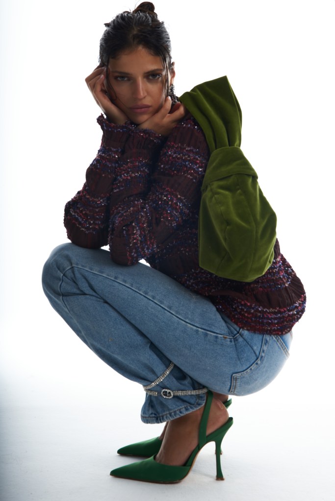 Choć z każdego niemal kadru bije zamiłowanie do estetyki vintage, nie zabrakło też akcentów nadających całości współczesnego charakteru. Garnitur ze złotych cekinów, bluzka z bufiastymi rękawami zestawiona z dżinsami i modnymi sandałkami oplatającymi nogawki czy kombinezon w psychodeliczne wzory, trochę a’la Pucci z lat 60., a trochę Metaversum – to detale, dzięki którym projekty Poli N. mogą trafić w gusta osób, dla których moda to prawdziwa radość.