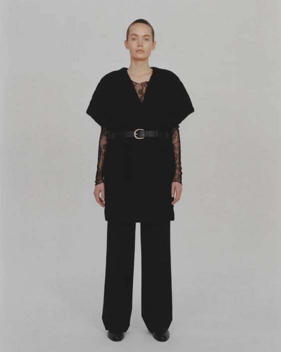 Jak co sezon, nie mogło zabraknąć detali, które podkręcają klasyczną estetykę marki. Pojawiły się bowiem nawiązania do zyskującej coraz większe zainteresowanie mody w stylu y2k. Oczywiście w minimalistycznej odsłonie – tuniki w komplecie ze spodniami, paski noszone wysoko w talii lub przeciwnie – nisko na biodrach, czy wreszcie transparentne koronki to ukłon w stronę trendów, jednak z zachowaniem DNA marki.