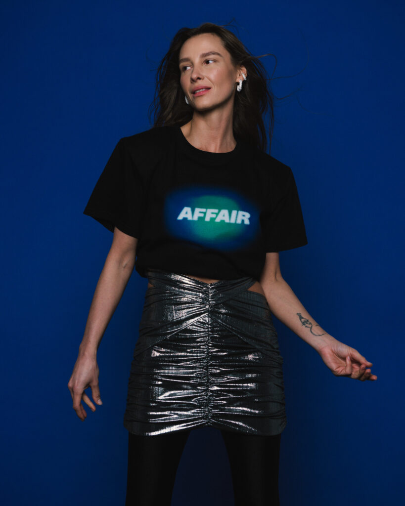 Dla fanek spokojniejszej, lecz nadal kobiecej i imprezowej estetyki, Affair proponuje dopasowane drapowane mini sukienki w stylu lat 80. pokryte autorskimi nadrukami. Stworzone w procesie manipulowania, rozciągania i rozmywania ostrości, grafiki przedstawiające charakterystyczne dla marki róże przeobraziły się w psychodeliczne plamy o nieokreślonym kształcie przywodzące na myśl estetykę lat 80. Oprócz sukienek zdobią one także T-shirty, idealne do łączenia z metaliczną mini na wyjście do klubu lub ulubionymi dżinsami na co dzień.