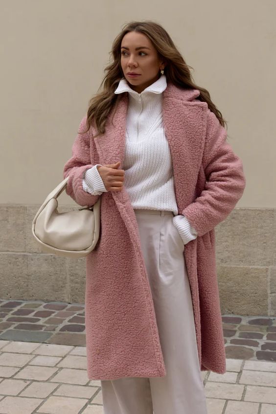 Druga kolekcja to mniej szaleństw kolorystycznych, za to więcej opcji stylizacji. Minimalistyczne płaszcze z paskiem w talii zyskały dwie długości: do kolan i połowy łydki, a także odpinane kołnierze ze sztucznego futra. W zależności od stylizacji dodają one odrobiny szaleństwa w stylu lat 70. lub elegancji rodem z lat 40. Kolory tej jesieni to pastelowy róż, burgund i dwa odcienie niebieskiego. Nowością są też okrycia w stylu teddy coat, spopularyzowane przez dom mody MaxMara i nadal silnie osadzone w trendach.