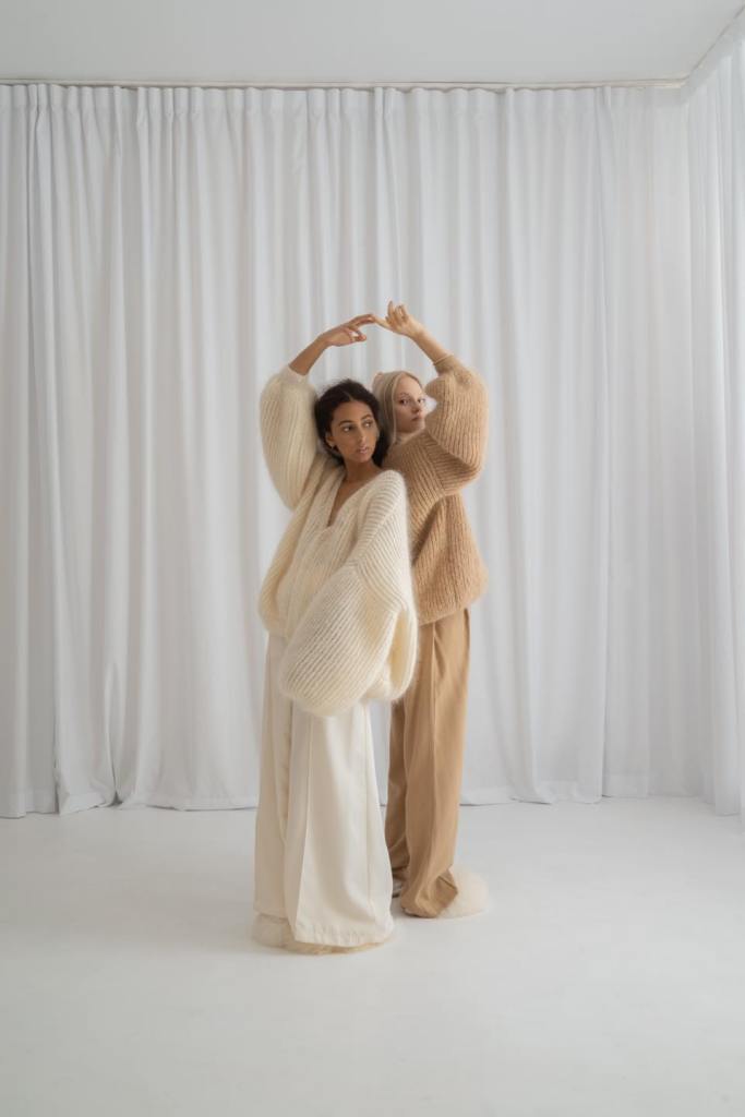 Te delikatne cuda powstają wykonywane na drutach z ultra miękkich włóczek z owczej wełny lub mieszanki alpaki, moheru i jedwabiu. Tylko nieliczne modele gotowe są do kupienia od ręki – zazwyczaj produkcja rozpoczyna się dopiero po złożeniu zamówienia. To prawdziwe rzemiosło, kunszt i tradycja połączone ze współczesnymi wartościami: estetycznym designem i zrównoważoną modą, w której liczy się przede wszystkim jakość i trwałość.