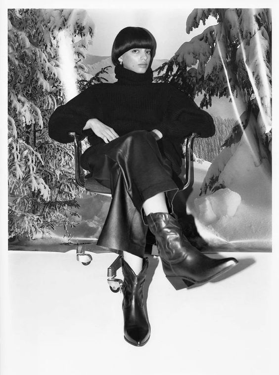 Nie mogło oczywiście zabraknąć oryginalnego i przyciągającego uwagę obuwia. Tutaj znów marka puszcza oko w stronę trendów, prezentując kowbojki z ozdobnymi haftami w dwóch długościach cholewki, a także chunky boots do połowy uda. Z pewnością są to modele nie tylko na sezon zimowy – obserwując styl uliczny największych stolic mody możemy być pewni, że pozostaną one w modzie na długi czas, również wiosną.