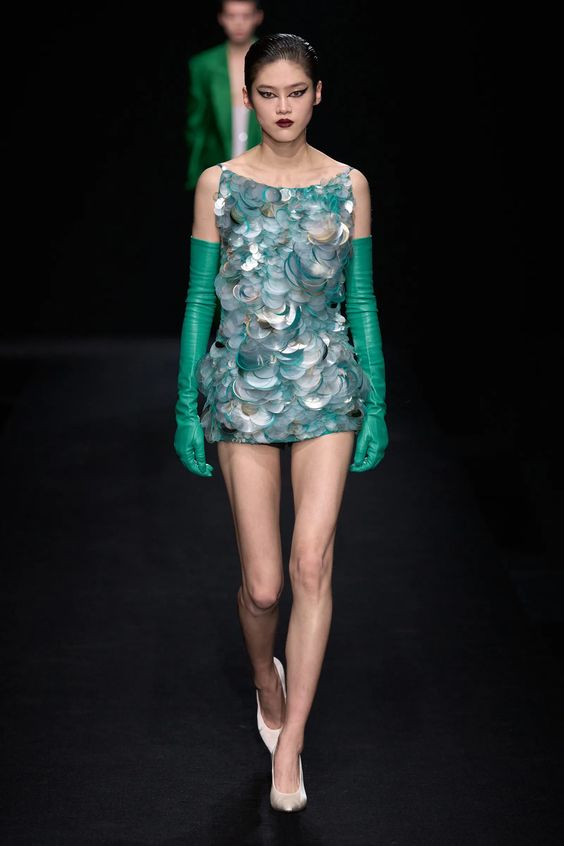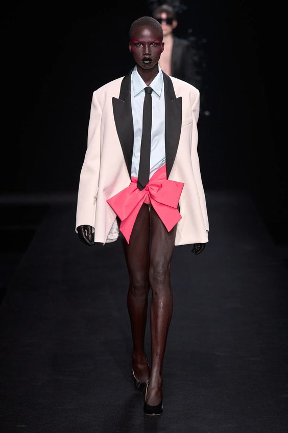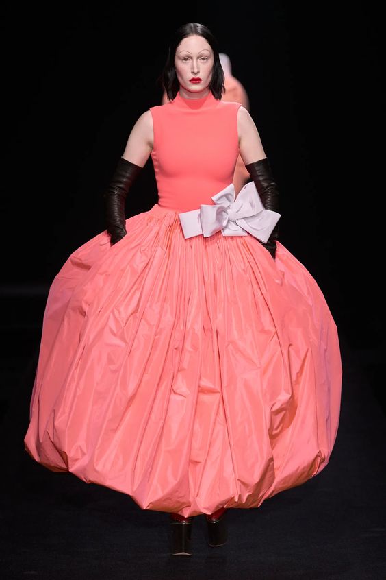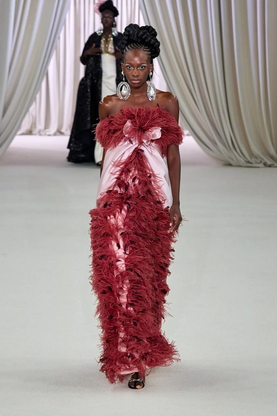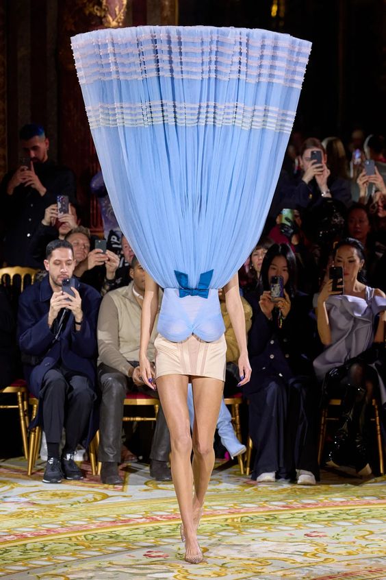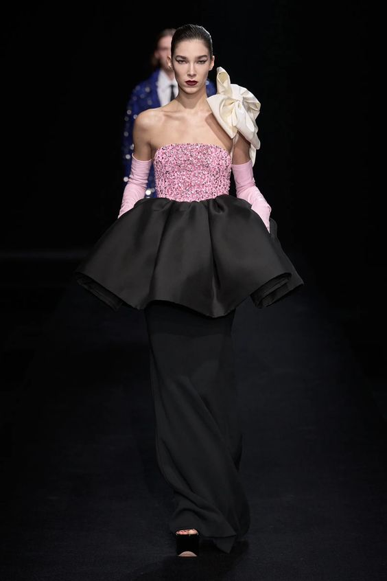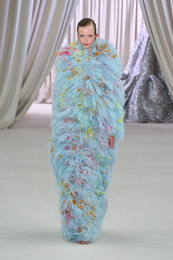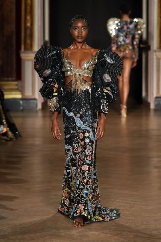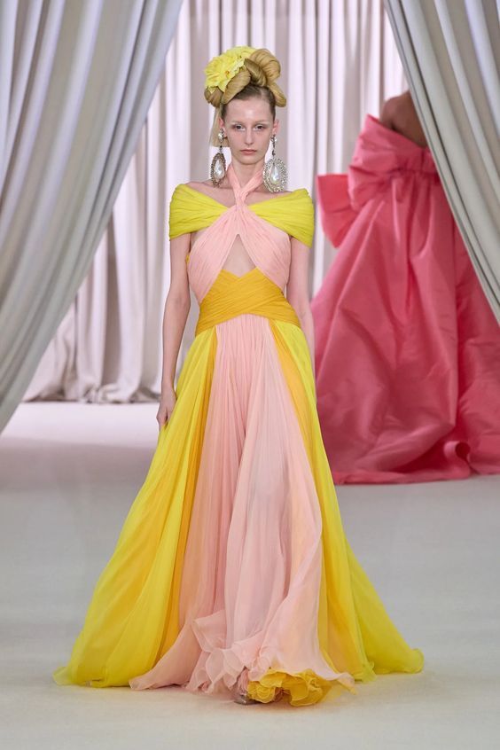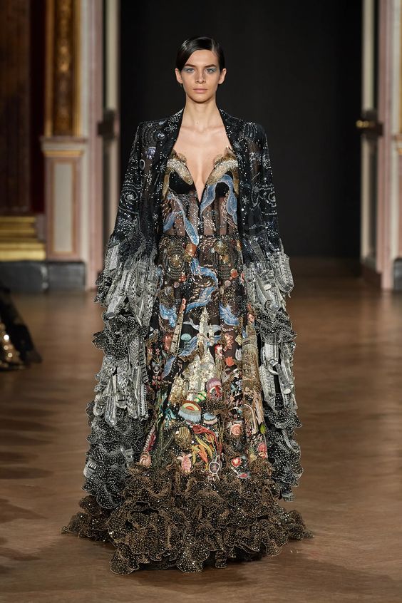 Tworzący we Francji włoski projektant mody zapisał się w pamięci jako twórca spektakularnych, kaskadowych kreacji złożonych z warstw tiulu, a także miłośnik kwiatowych motywów. Suknie przypominające stroje księżniczek z XIX-wiecznych obrazów, zawojowały czerwone dywany za sprawą gwiazd i influencerek. W tym sezonie projektant odchodzi nieco od tiulu, ustępując miejsca fantazyjnym drapowaniom i bufkom. Imponujące objętości rękawów i spódnic oraz mistrzowskie formy zahaczające o inspiracje ubiorem historycznym, w połączeniu ze współczesnym spojrzeniem na Haute Couture tworzą niezwykle radosną i dziewczęcą mieszankę.