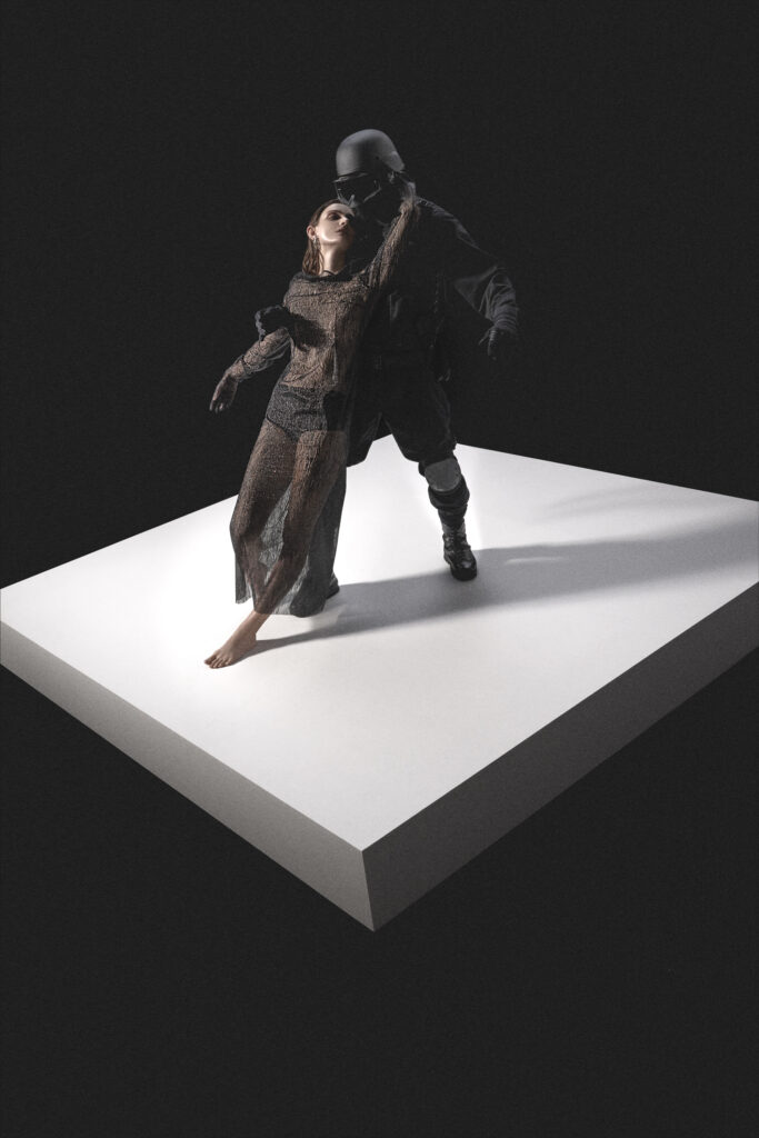 Na zdjęciach promujących kolekcję obserwujemy parę w niezwykłym tańcu, uchwyconą przez Daniela Jaroszka. Fotograf, a obecnie również reżyser, współpracuje z Kas Kryst od wielu lat; to on stoi za jej najlepszymi kampaniami. Charakterystyczne dynamiczne kadry jego autorstwa zawsze opowiadają jakąś historię, nie są jedynie upozowanymi obrazkami z pięknego studia.