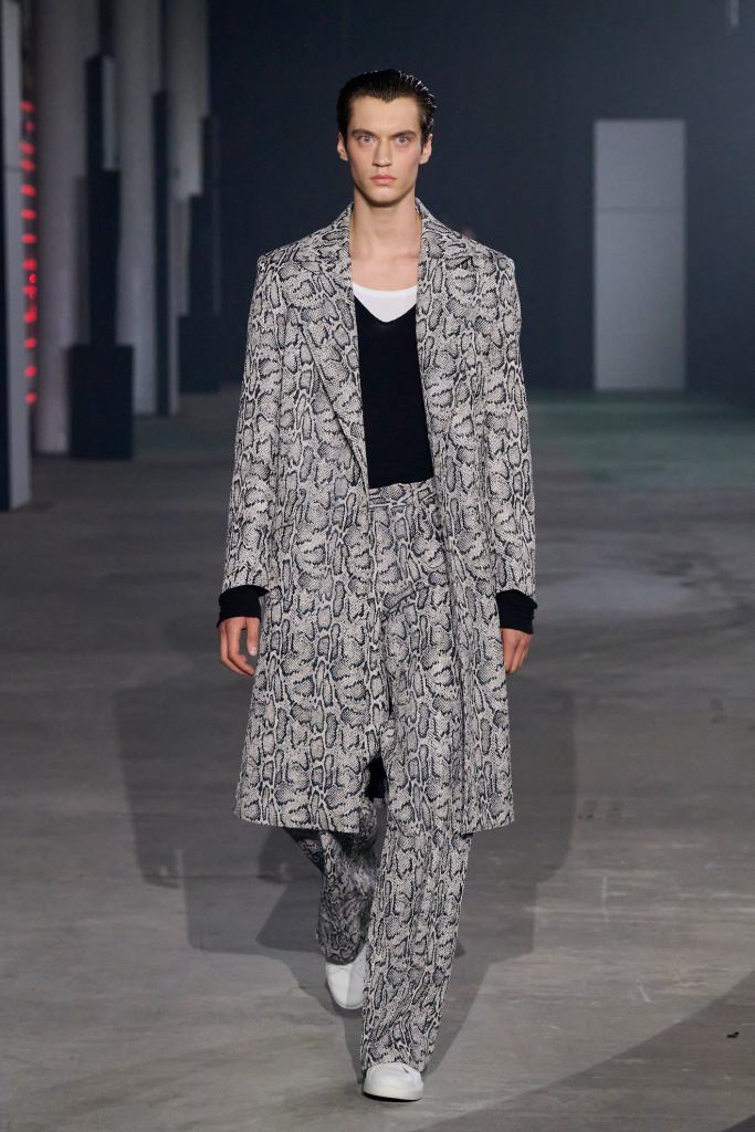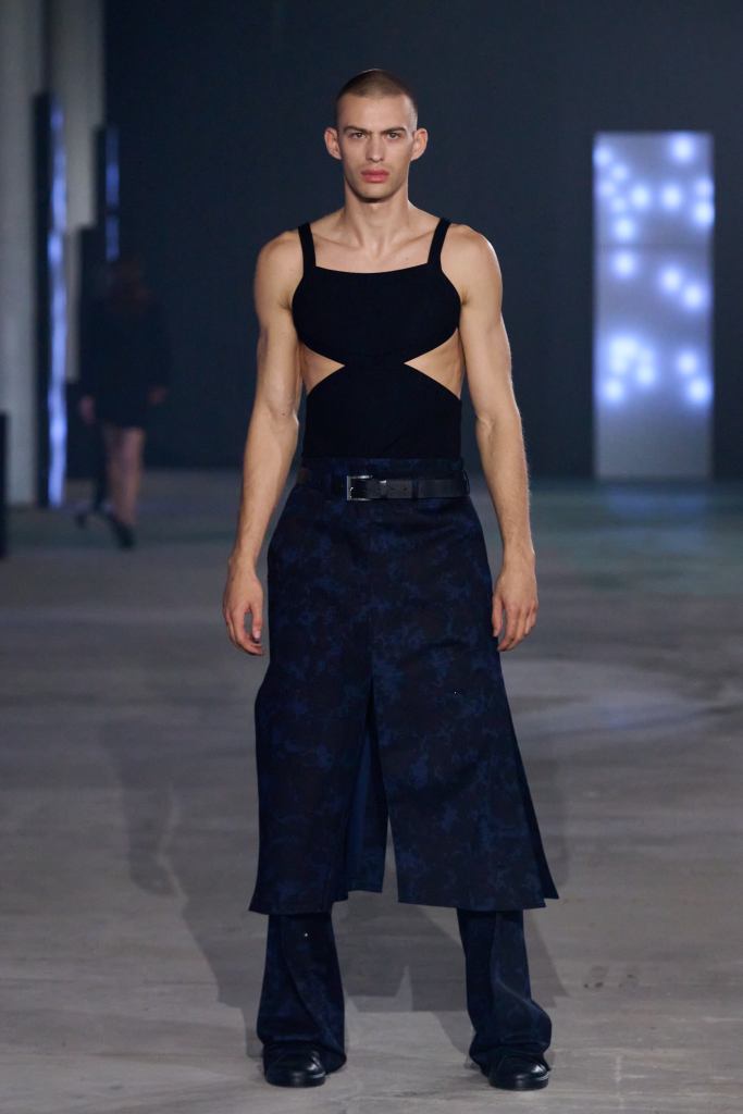Uwadze projektanta nie umknęło też popularne od kilku sezonów zestawienie spódnicy ze spodniami. U Przybylskiego ten sposób stylizacji został zaproponowany zarówno w wydaniu damskim, jak i męskim. Zresztą takich uniseksowych propozycji było o wiele więcej – cętkowane koszule, różowe garnitury i topy z wycięciami nosiły tak często modelki, jak i modele.