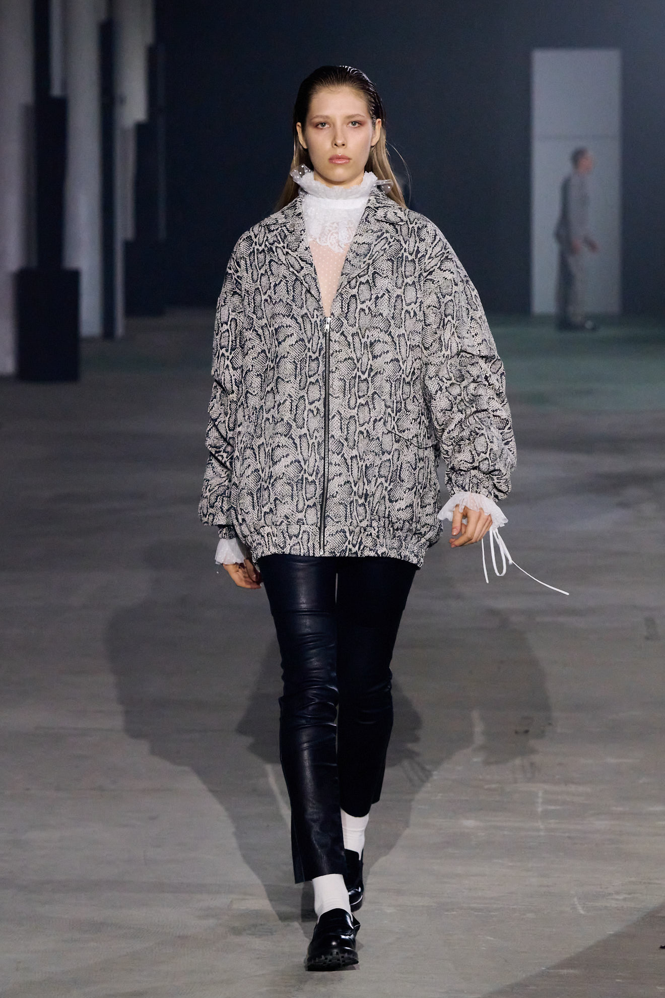 Pokaz najnowszej kolekcji Mariusza Przybylskiego odbył się we wnętrzach Soho Factory w Warszawie, gdzie dawniej mieściła się Drukarnia Naukowo-Techniczna. Industrialna przestrzeń stała się doskonałym tłem dla ubrań utrzymanych w odcieniach szarości, czerni i bieli, przełamanych akcentem intensywnej magenty, czerwieni i niebieskiego.