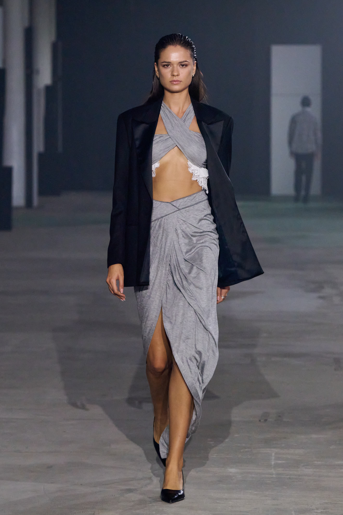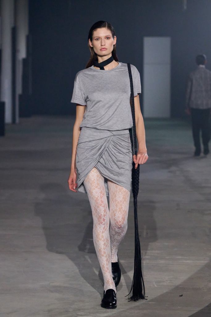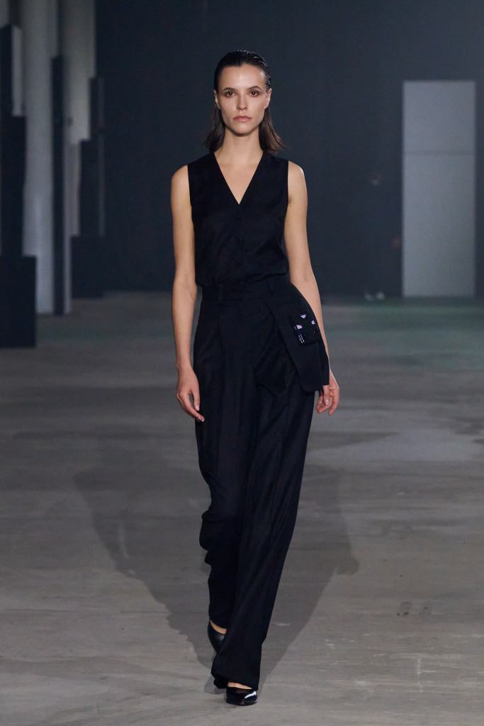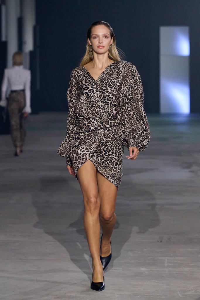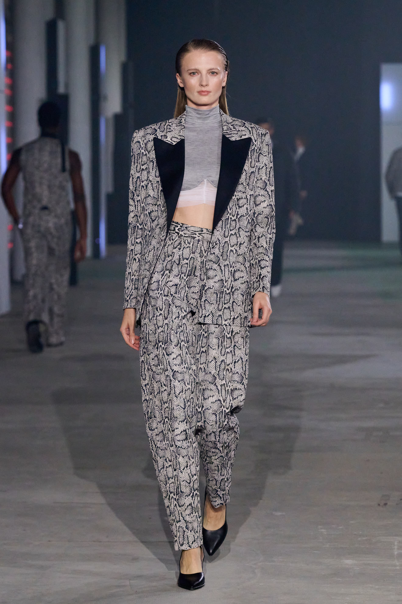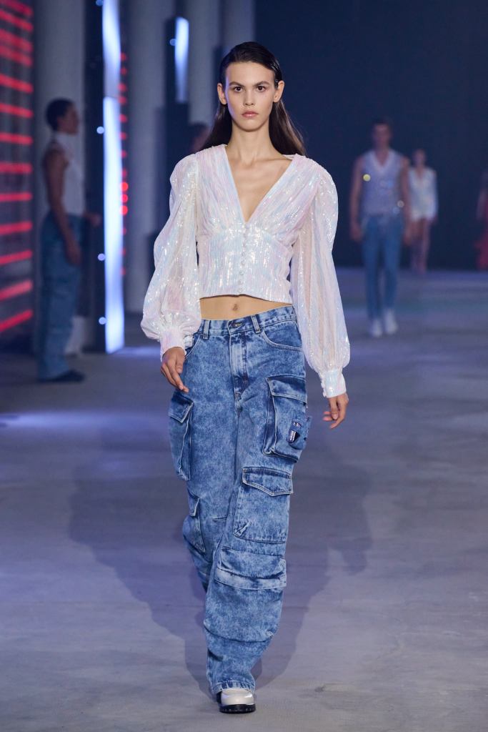 Na wieczór z kolei pojawiły się sukienki, topy i spódnice z plecionej siatki z długimi frędzlami, będące interesującą wariacją na temat naked dress, tutaj stylizowane na mnóstwo sposobów: jako suknia z body pod spodem lub warstwowo z golfem, koszulą czy też ze spodniami. W połączeniu z cekinami i mocnym kolorem tworzą efekt maksymalistycznego glamour rodem ze słynnego Studio 54.
