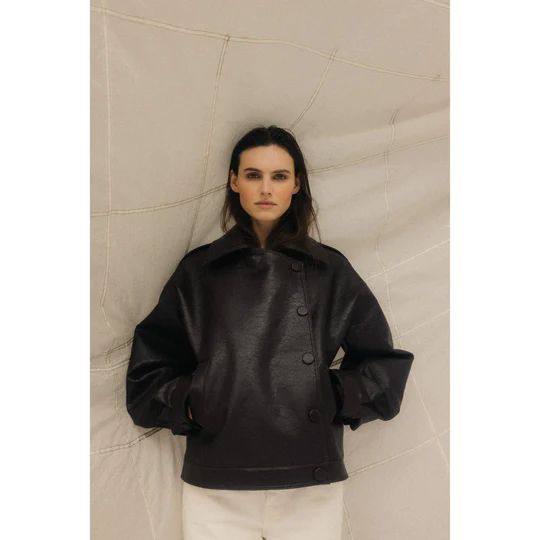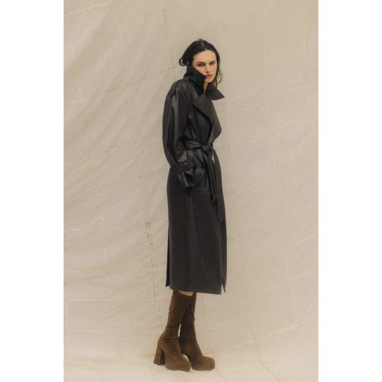 Wśród nowości u Alexandry K po raz pierwszy pojawiły się okrycia wierzchnie, uzupełniając tym samym linię odzieży. Projektantka ponownie sięgnęła po innowacyjną wegańską skórę wyprodukowaną w 70% z biomasy kukurydzianej, z której powstała krótka kurtka inspirowana latami 90. Długi trencz o fasonie oversize został z kolei uszyty ze sztucznej skóry z 30% zawartością poliestru z recyklingu. Obok tych okryć nie można przejść obojętnie.