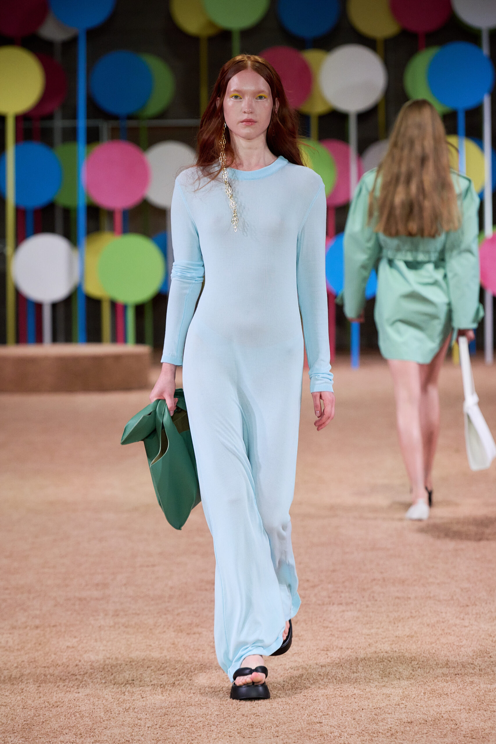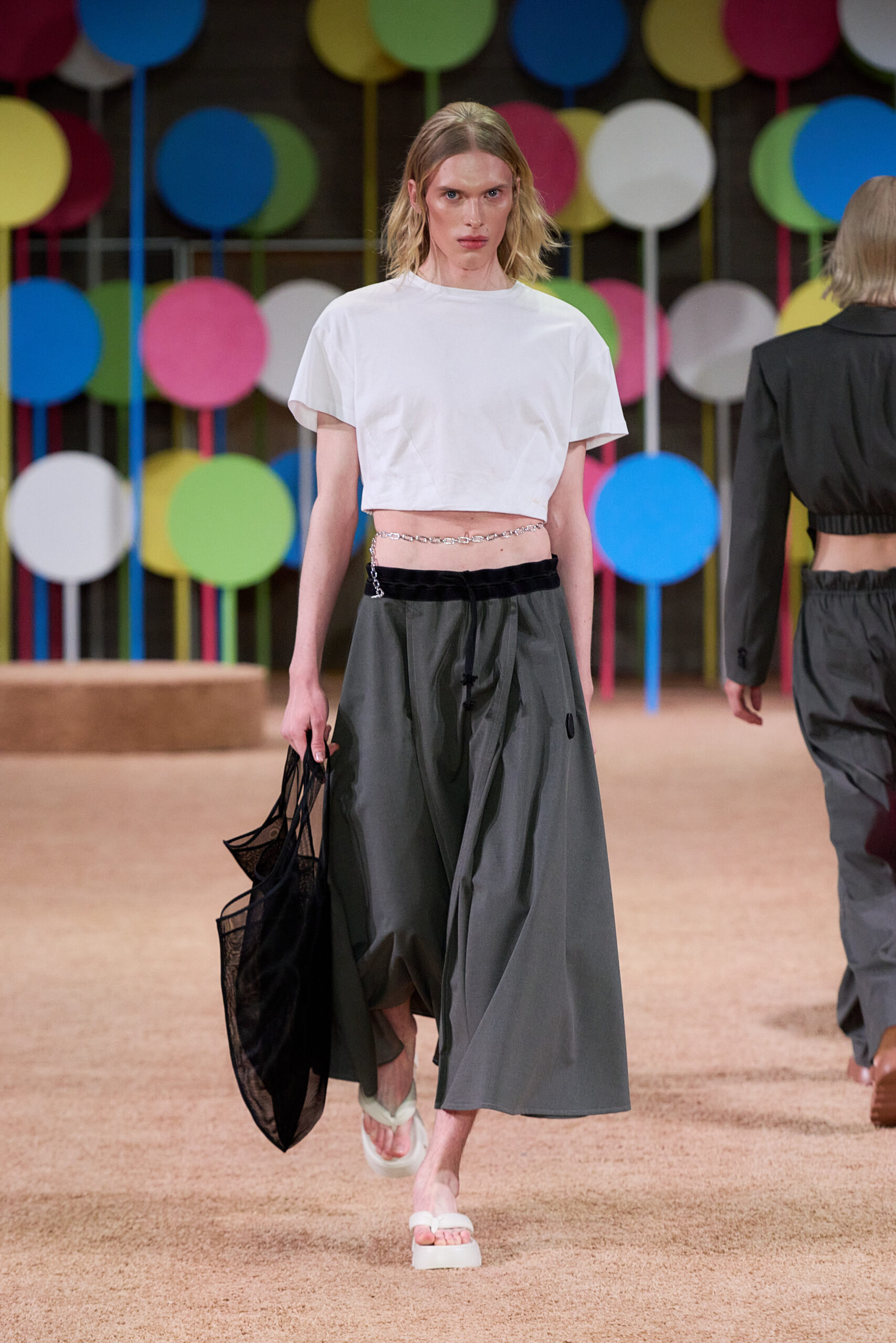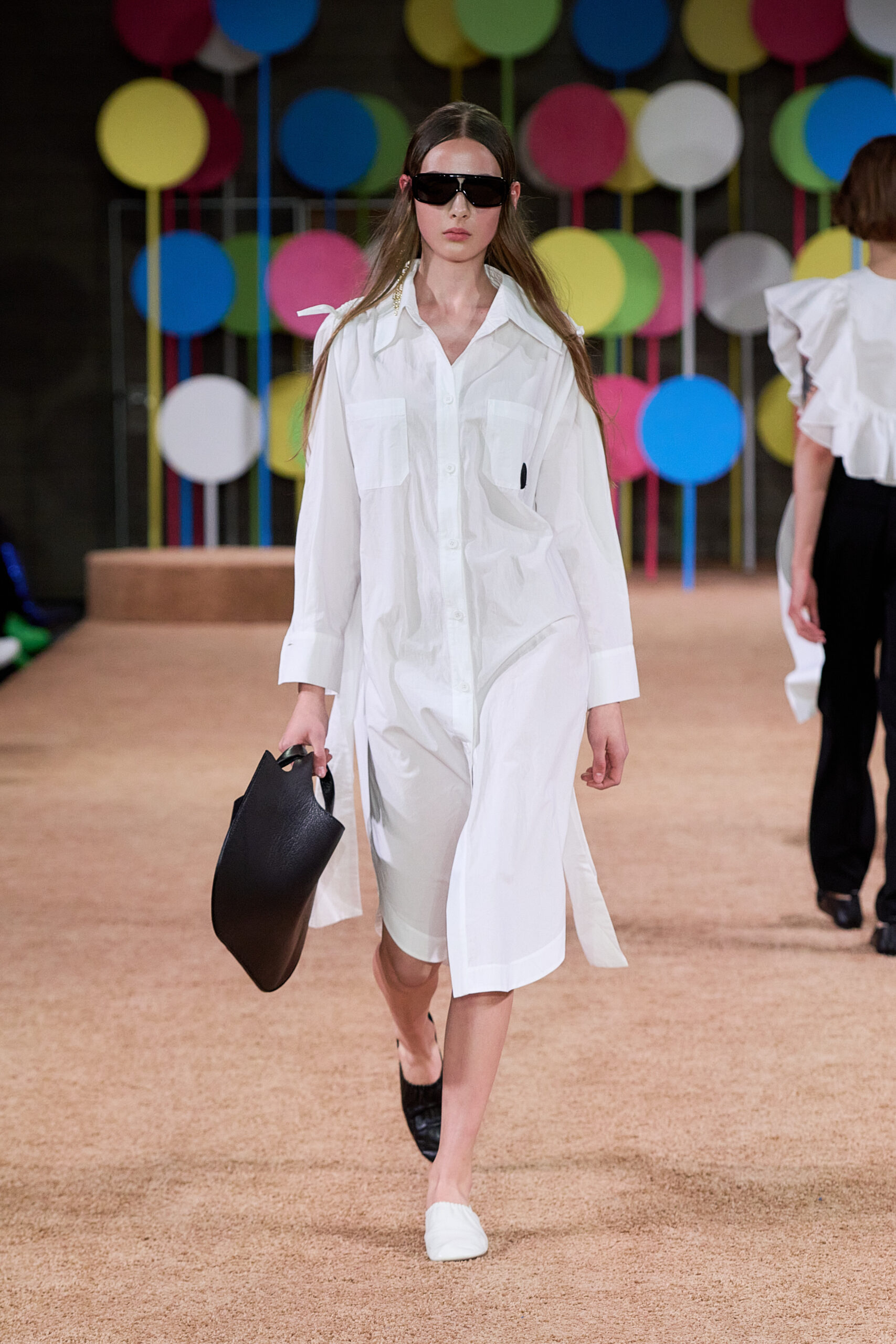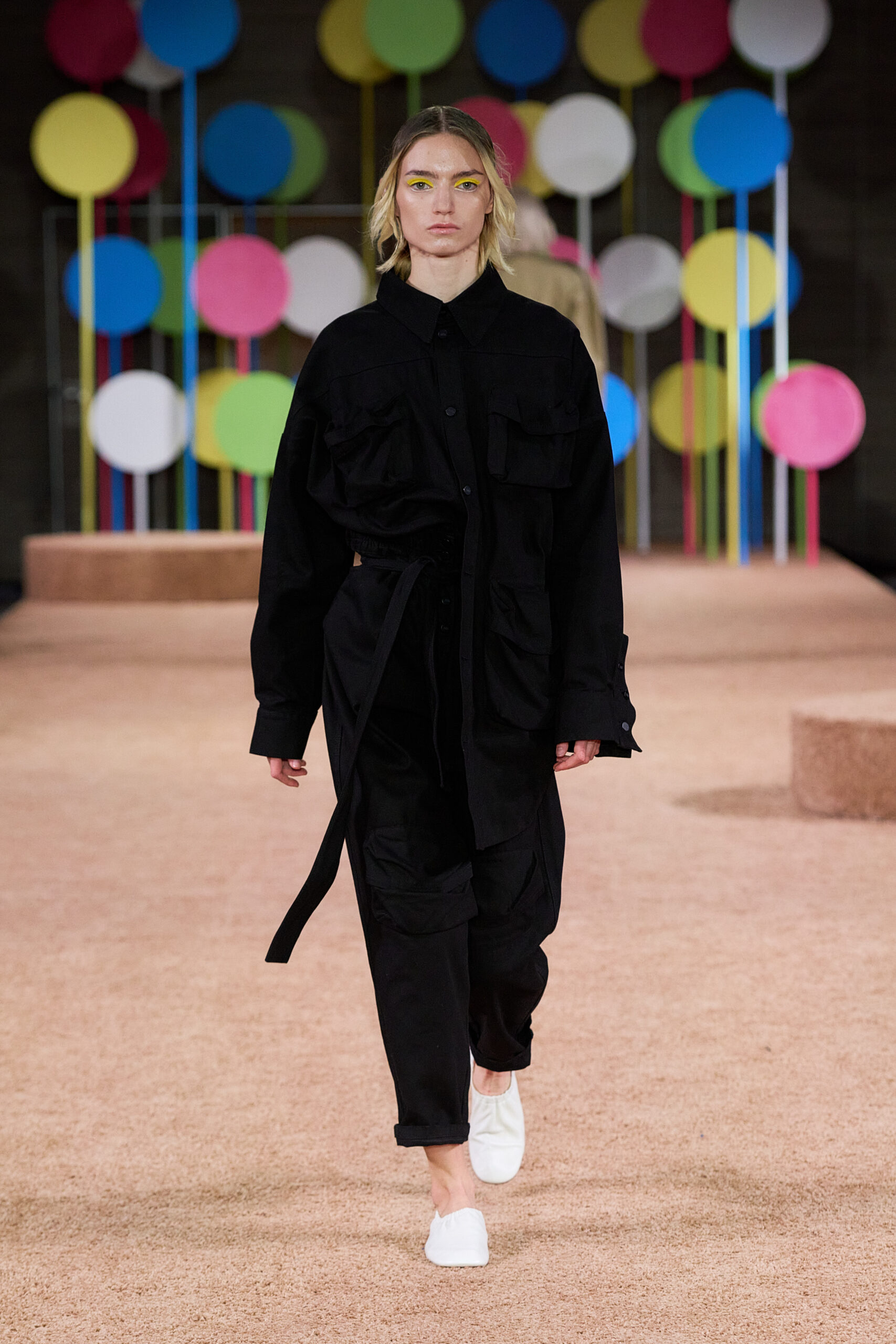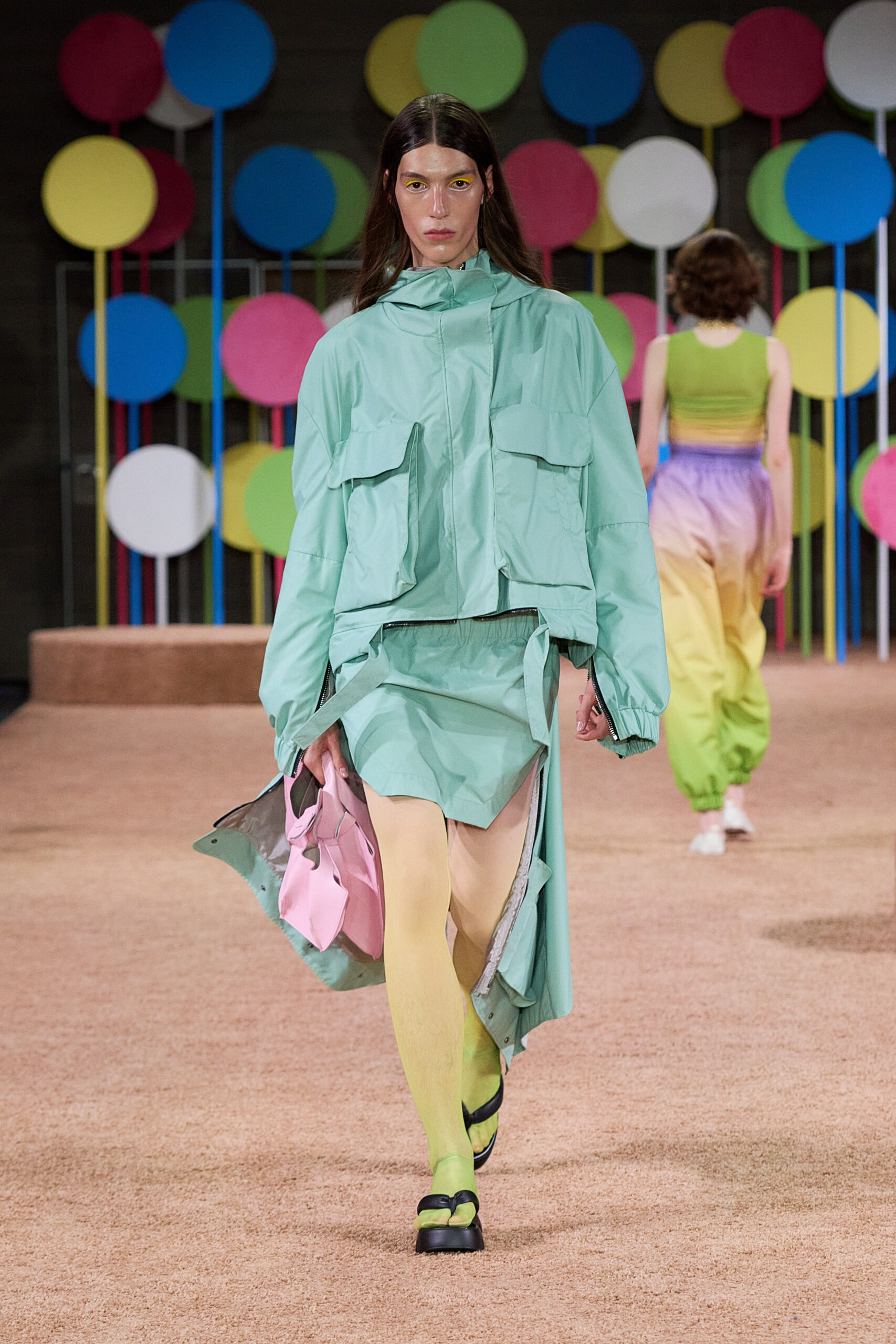 Przeskalowane sportowe kurtki z praktycznymi kieszeniami, puchowe pikowane kamizelki, spodnie cargo i kombinezony inspirowane odzieżą roboczą to elementy obecne w MMC od lat i odzwierciedlające miejski styl marki. Tym razem pojawiły się one w minimalistycznej bieli i rozbielonym turkusie. Wtórowały im dżinsowe komplety składające się z szerokich spodni i kurtek, krótkie marynarki oraz garniturowe spodnie, oczywiście wystylizowane w casualowy, nonszalancki sposób.