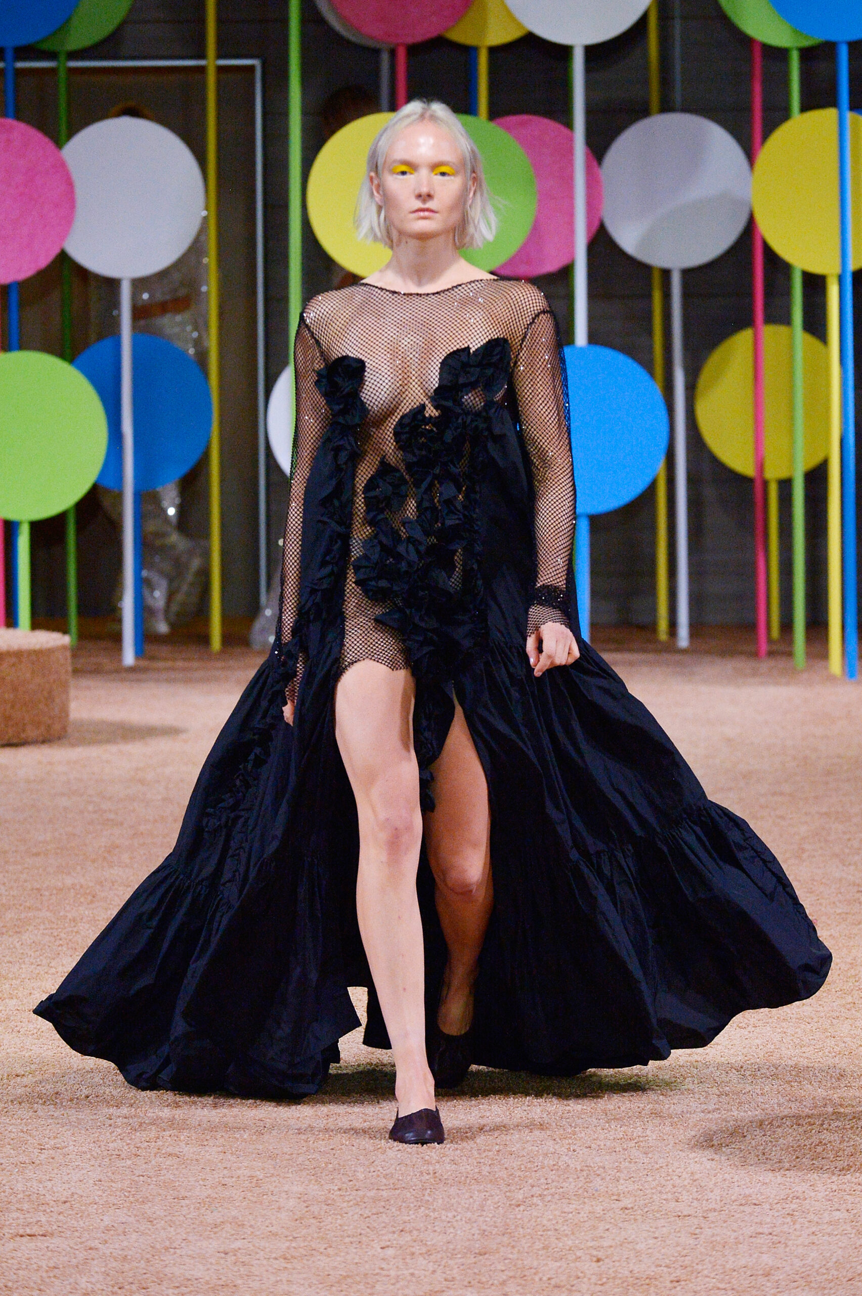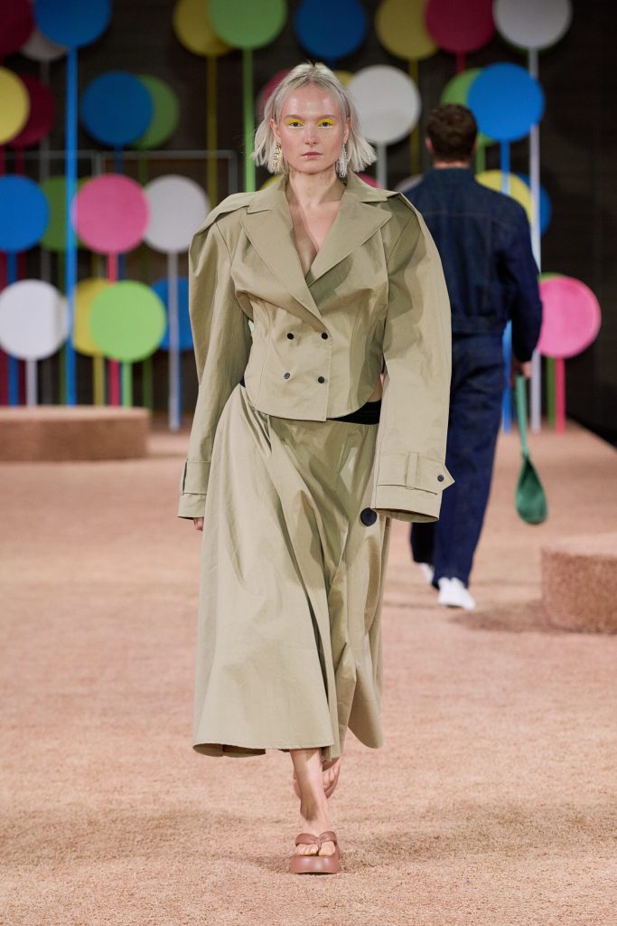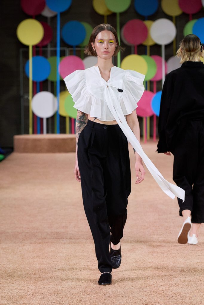 Marka MMC postawiła też na mocny akcent w postaci ekstremalnie szerokich ramion w skórzanych kurtkach czy marynarkach inspirowanych klasycznym trenczem. Nie zabrakło też oversize’owych sukienek bazujących na fasonie koszuli, przeskalowanych marynarek czy topów z geometrycznymi marszczeniami.