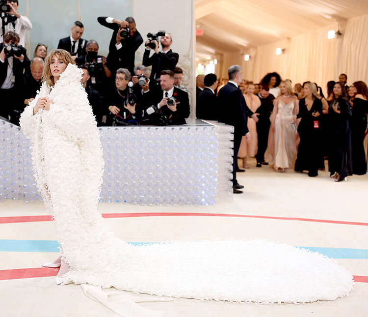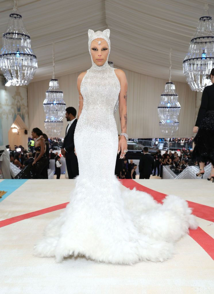 Po charakterystyczne dla Chanel kamelie w rozmiarze XXL sięgnęły między innymi Cardi B i Rihanna. Ich kreacje były prawdopodobnie jednymi z najbardziej przykuwających uwagę podczas całego wydarzenia. Choć konkurencję miały ogromną, ponieważ kilku gości postanowiło zainspirować się Choupette, ukochaną kotką Lagerfelda. Niektórzy zadanie wzięli sobie do serca bardzo dosłownie – Jared Leto pojawił się w realistycznym kostiumie kota, Doja Cat z kolei postawiła na połyskującą, syrenią suknię wykończoną nakryciem głowy z kocimi uszami.