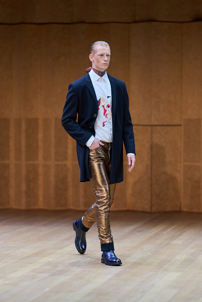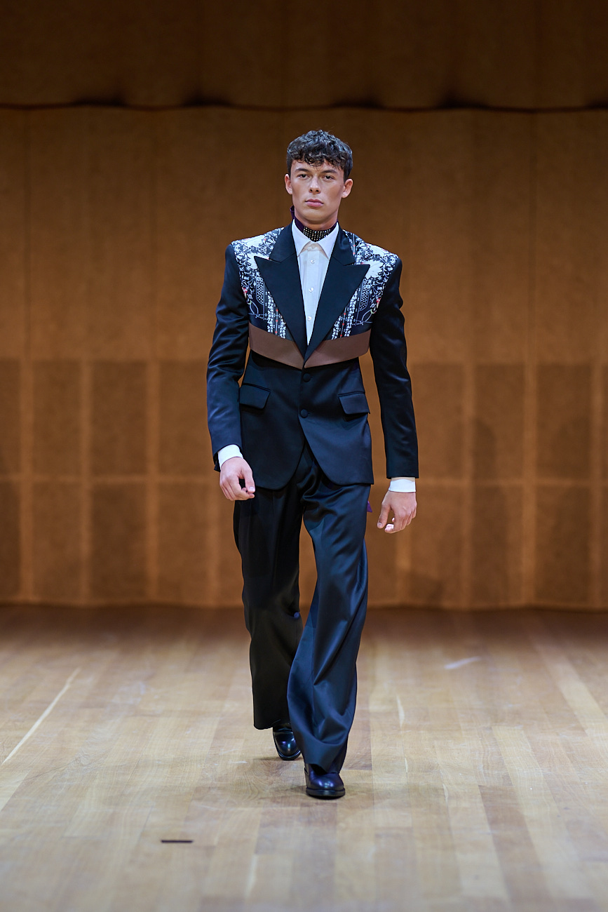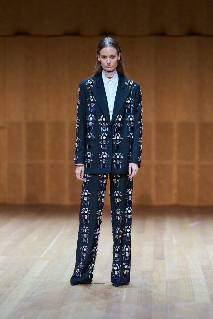 W kolekcji pojawiły się znane poprzednich kolekcji Przybylskiego motywy: trójwymiarowe hafty, geometryczne konstrukcje, patchworkowe łączenia materiałów oraz oczywiście wariacje na temat klasycznego smokingu. Zachwycają propozycje wieczorowe – cekinowe suknie z siateczkowymi panelami i haftowane w geometryczne motywy koszule oraz garnitury. Jak zawsze u projektanta dominują szlachetne, najwyższej jakości materiały takie jak wełna i jedwab, a niektóre modele powstały tylko w jednym egzemplarzu, co czyni z nich wyjątkowe unikaty.