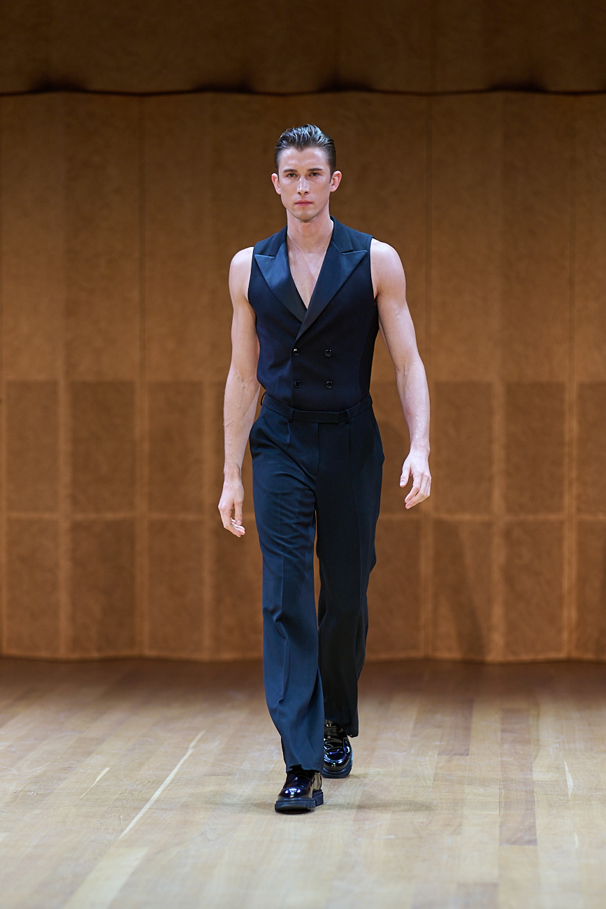 Projekty Mariusza Przybylskiego dla mężczyzn zawsze wyprzedzały swoje czasy, co możemy potwierdzić dziś, kiedy obserwujemy coraz to więcej podobnych propozycji na zagranicznych wybiegach. Kobiety z kolei uwielbia on ubierać w nienagannie skrojone garnitury i smokingi z mocną linią ramion. Zarówno owe garnitury, jak również asymetrycznie drapowane topy oraz spódnice, wyglądają rewelacyjnie noszone i przez kobiety, i przez mężczyzn. A to dlatego, że projektant od lat specjalizuje się w łączeniu klasyki z awangardą oraz zacieraniu granic między męskim i kobiecym ubiorem.