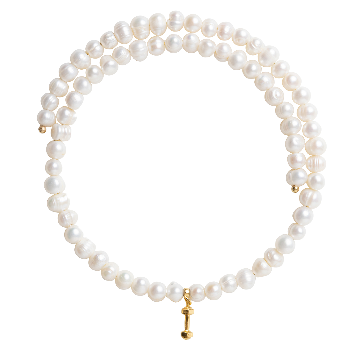 Perłowy naszyjnik może dla wielu osób wydawać się zbyt wytworny i „poważny”. Ten ma formę chokera i posiada zabawną zawieszkę w kształcie hantelka, która zachwyci entuzjastkę zdrowego stylu życia.