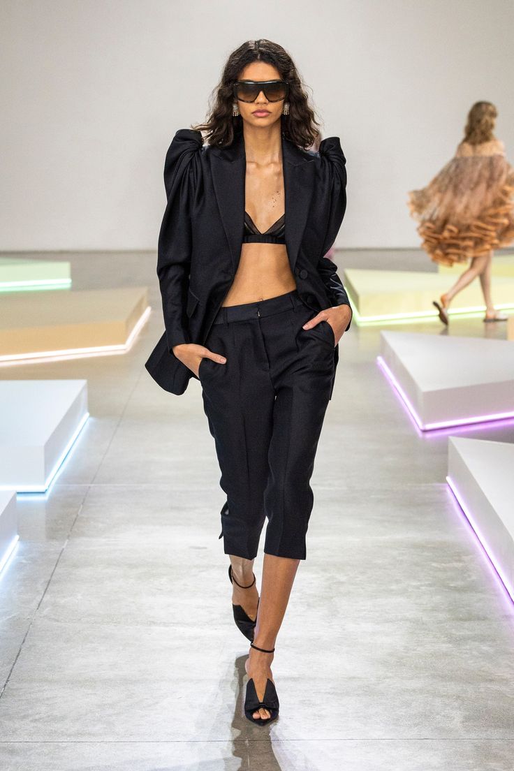 Spodnie o długości sięgającej tuż za kolano, znane u nas lepiej jako rybaczki to jeden z trendów, o których większość z nas wolałaby na zawsze zapomnieć. Jednak moda jest jak matematyka – trendy zataczają koło średnio co dwie dekady, nic więc dziwnego, że przyszła również pora na jeden z modowych koszmarów naszej przeszłości. Najbezpieczniejsza opcja spodni capri to dopasowany fason w czarnym kolorze, który świetnie odnajdzie się w minimalistycznej oprawie.