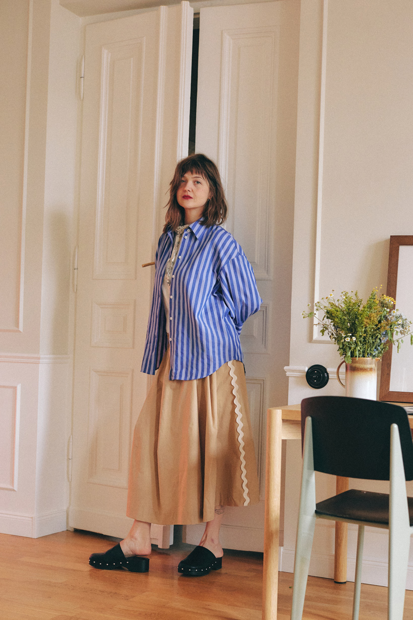 Wiodącym motywem kolekcji jest fala, przewijająca się w poszczególnych modelach w postaci ozdobnej taśmy. Pojawia się ona na brzegach kimonowej kurtki, jako lampas na spódnicy czy na przodzie kremowej bluzki, tworząc asymetryczną dekorację. Niezwykle imponujące jest też, jak marka potrafi inspirować się swoimi własnymi projektami i za każdym razem serwować je w nowy sposób. Tym razem zachwyt budzą koszule o rozluźnionym fasonie i rękawach sięgających łokcia, sukienka krojem przypominająca klasyczny trencz czy krótkie kimono ze spranego denimu o interesującej, wypukłej fakturze.