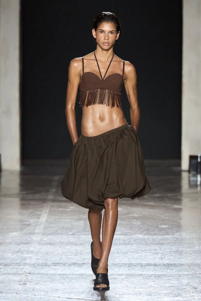 Bombka ugruntowuje swój status najmodniejszego fasonu spódnicy. Występuje we wszystkich długościach – mini, midi i maxi, formach – tradycyjnych i bardziej architektonicznych, oraz kolorach. Współczesna bombka sprawdzi się również w codziennych stylizacjach!