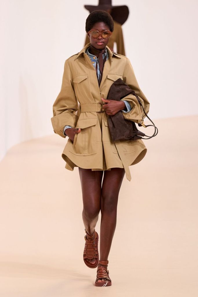 Zapoczątkowany niegdyś przez Yvesa Saint Laurenta styl safari cyklicznie powraca do mody, zwłaszcza na fali popularności estetyki lat 70. Praktyczne kieszenie i maskujące kolory to wyróżniki tego stylu.