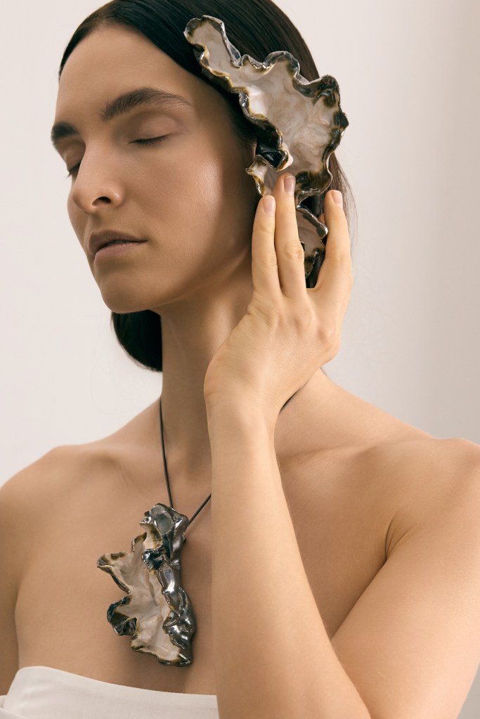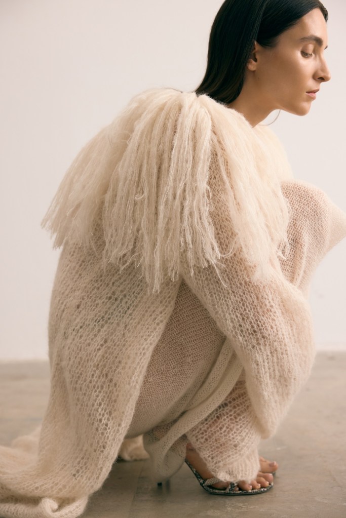 Polska marka Karen Arcanjo kontynuuje swoją wizję kreowania luksusu w oparciu o tradycyjne rzemiosło i nowoczesny design. Sukienki są niczym dzieła sztuki – wydziergane ręcznie na drutach i szydełku lub ozdobione haftem sznurkowym, zmysłowo otulają sylwetkę. Kontrastują z nimi mocne okrycia wierzchnie wykonane z naturalnej skóry i bawełny. Kurtki i płaszcze z wysoko postawionym kołnierzem oraz przeskalowane garnitury z mocną linią ramion nawiązują do męskiego krawiectwa.