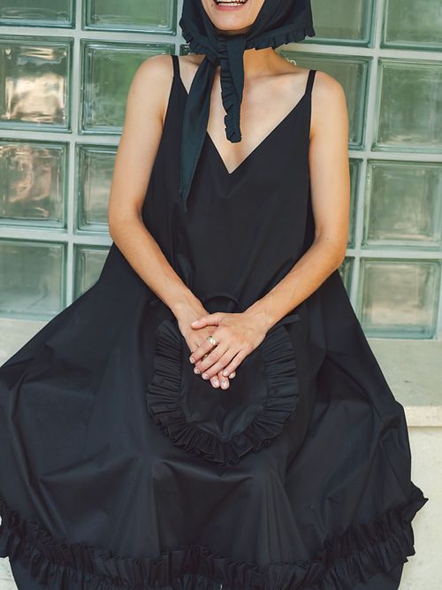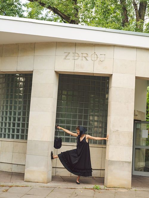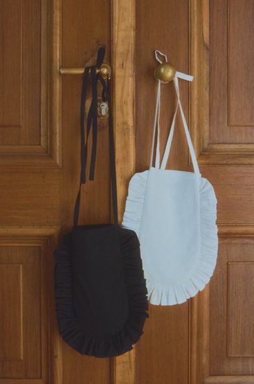 Anna i Natalia nie zapomniały o akcesoriach, które uzupełniają kapsułę i stanowią wisienkę na torcie każdej stylizacji. W kolekcji znalazła się chustka, do zawiązania na głowie lub na szyi, czy jakkolwiek przyjdzie ochota, a także urocza torebeczka, również otoczona gęstą falbanką. Ubrania i dodatki uszyto z naturalnych, przyjaznych dla skóry materiałów: certyfikowanej bawełny (wersja czarna) oraz mieszanki wiskozy i lnu (wersja biała).
