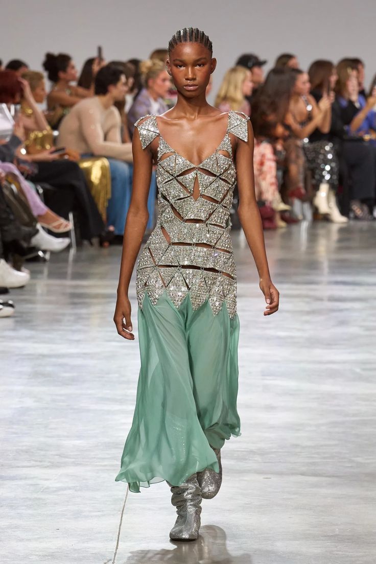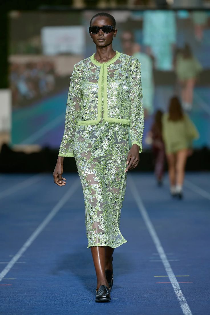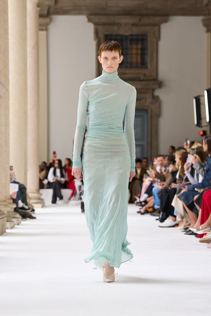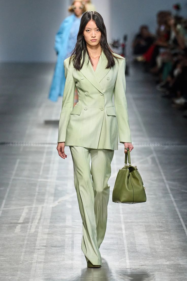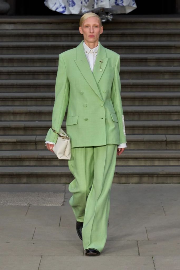 Pastelowy odcień zielonego przywodzi na myśl lody pistacjowe. Projektanci proponują go na minimalistycznych garniturach, drapowanych sukienkach i topach lub w formie połyskujących cekinów.