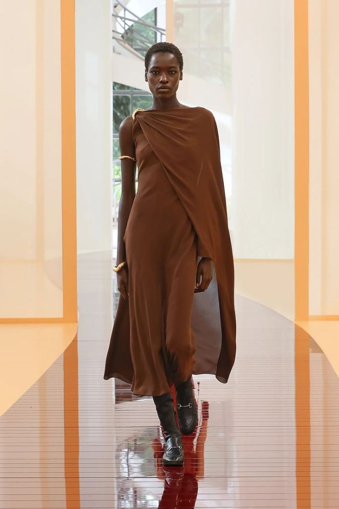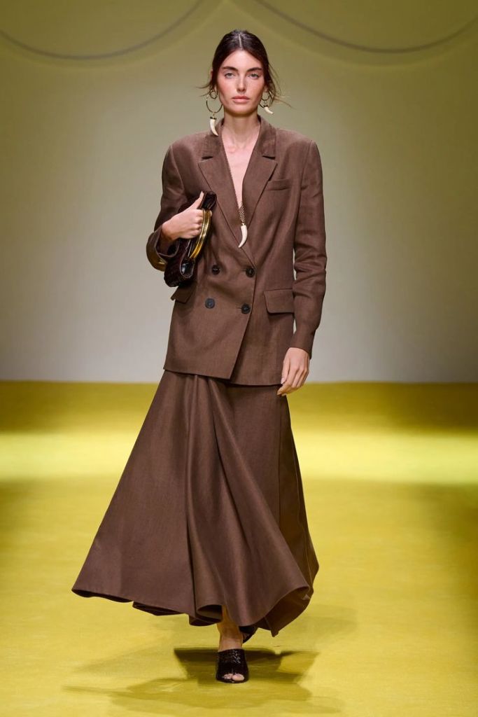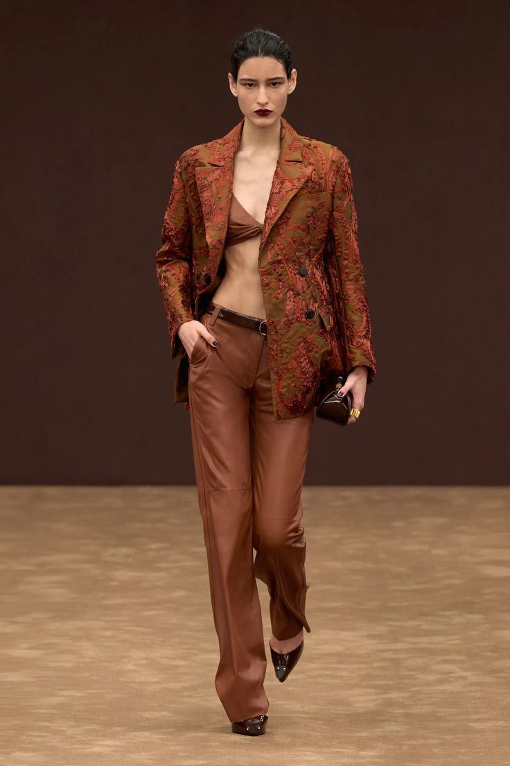 Okrzyknięty kolorem roku 2025 mocha mousse to delikatny, jasny i nieco rozbielony odcień brązu. Wymaga on tkanin o wysokiej jakości – najlepiej sprawdzi się mięsista wełna, lejąca wiskoza lub jedwab czy błyszcząca skóra. Rewelacyjnie podbije urok dodatków w kontrastowym kolorze.