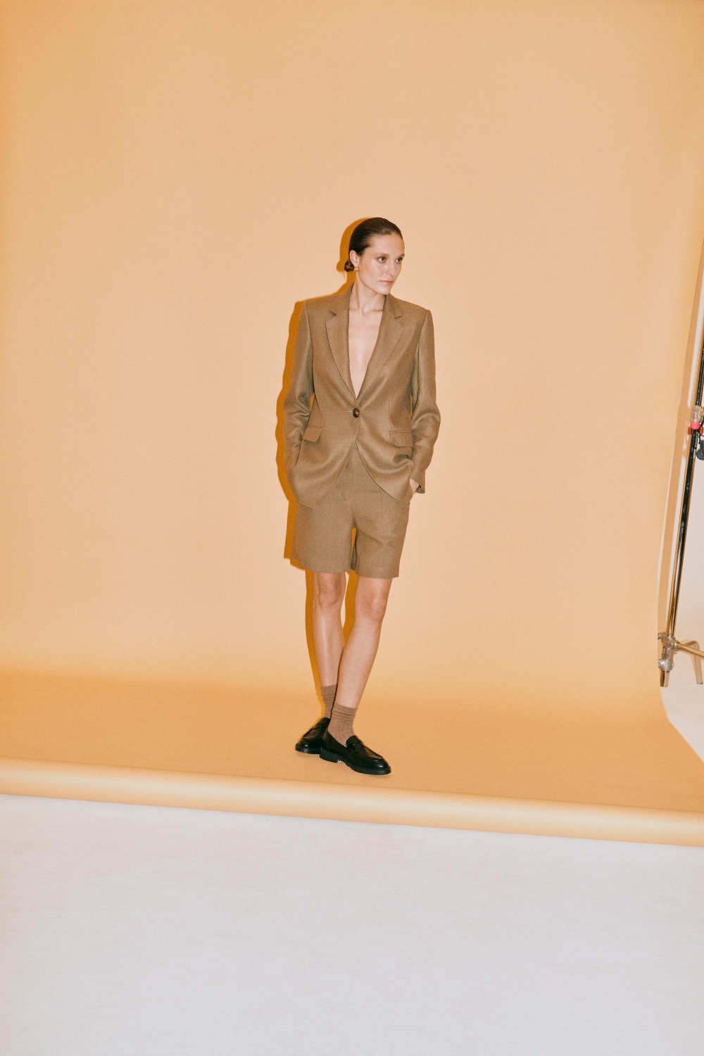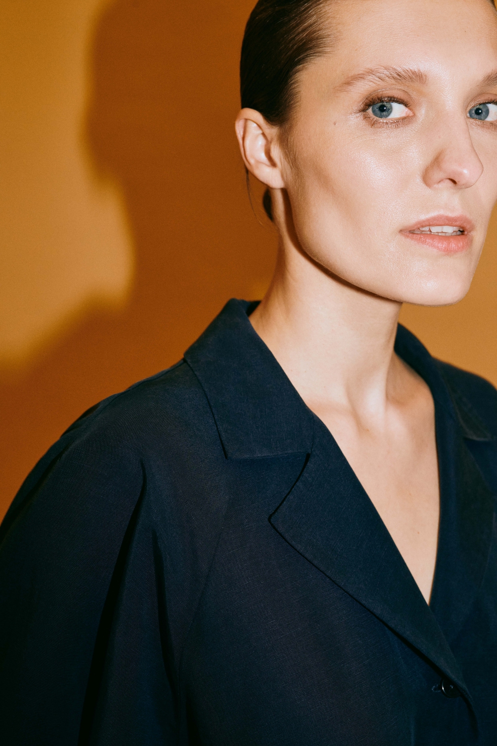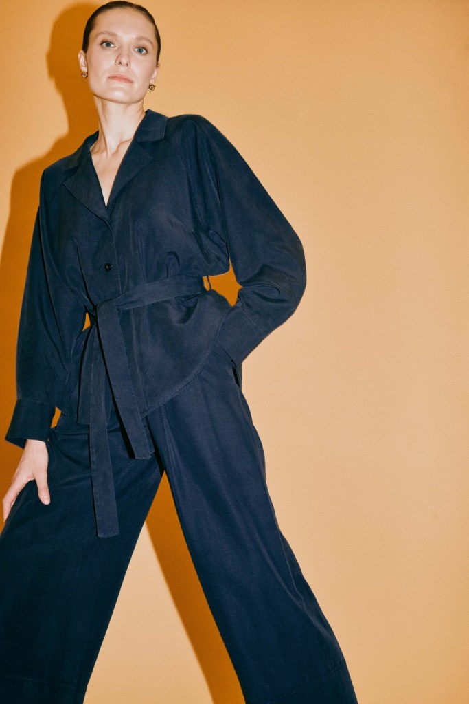 Głównymi gwiazdami kolekcji są oczywiście garnitury. Wśród nich wyróżnia się ten w kolorze złocistego beżu, uszyty z wysokiej jakości wiskozy, na acetatowej podszewce. Tuż za nim podąża trzyczęściowy zestaw w beżowo-biały prążek – do noszenia w komplecie lub osobno. Uwagę przykuwa również klasyczny minimalistyczny granatowy garnitur z szerokimi spodniami w tenisowy prążek, nawiązujący do biurowego dress code’u z lat 90.