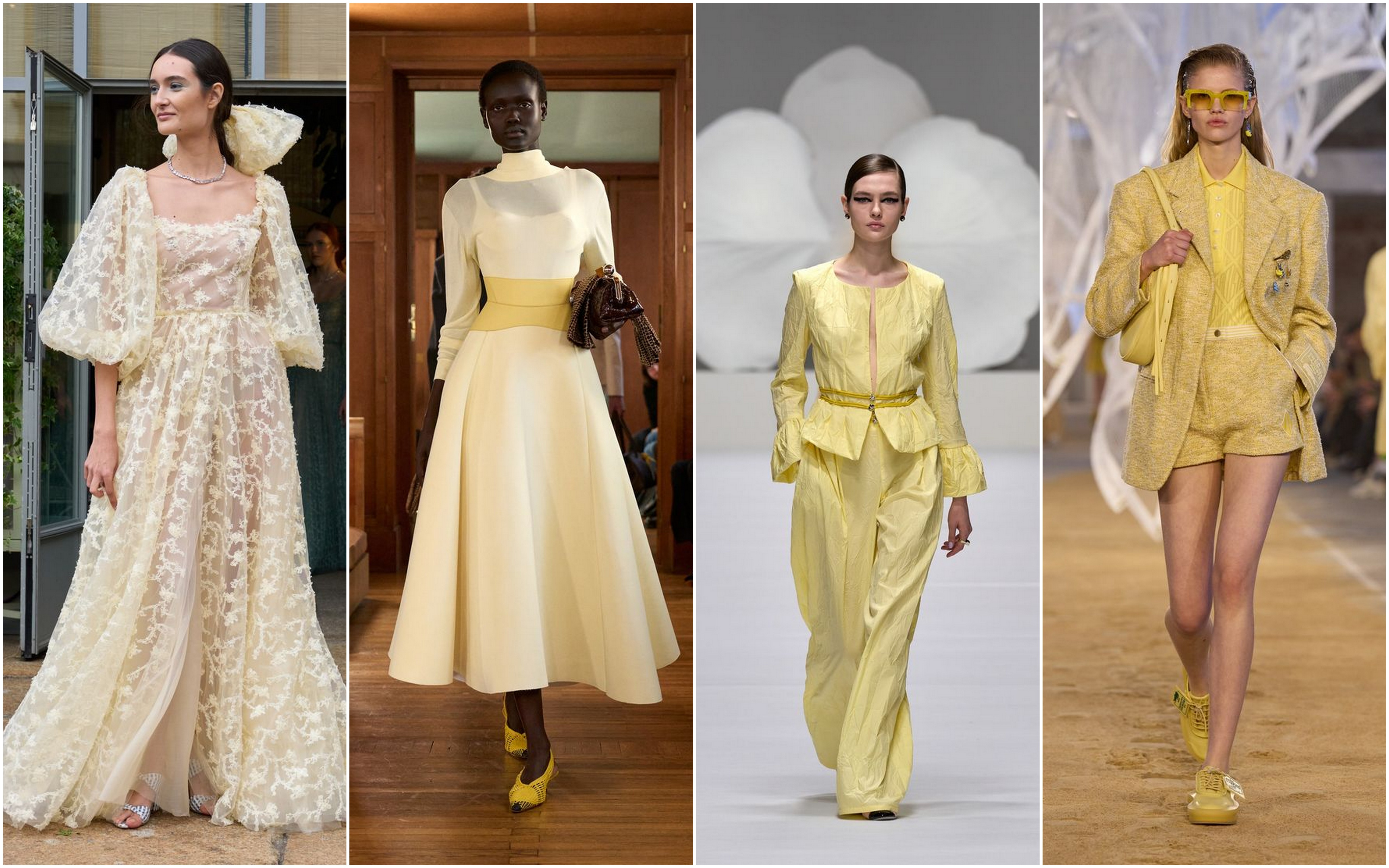 Choć na wybiegach zadebiutował już jakiś czas temu, butter yellow dopiero teraz może poszczycić się mianem najpopularniejszego koloru sezonu – niemal całkowicie zdominował Instagramowy feed, detronizując królujący zimą brąz i burgund. Ten rozbielony odcień żółci, przypominający kolor masła, to wdzięczny odcień, który wspaniale łączy się z innymi pastelami (na przykład błękitem czy lawendą), odcieniami brązu i karmelu, a nawet bordo czy ciemną zielenią.