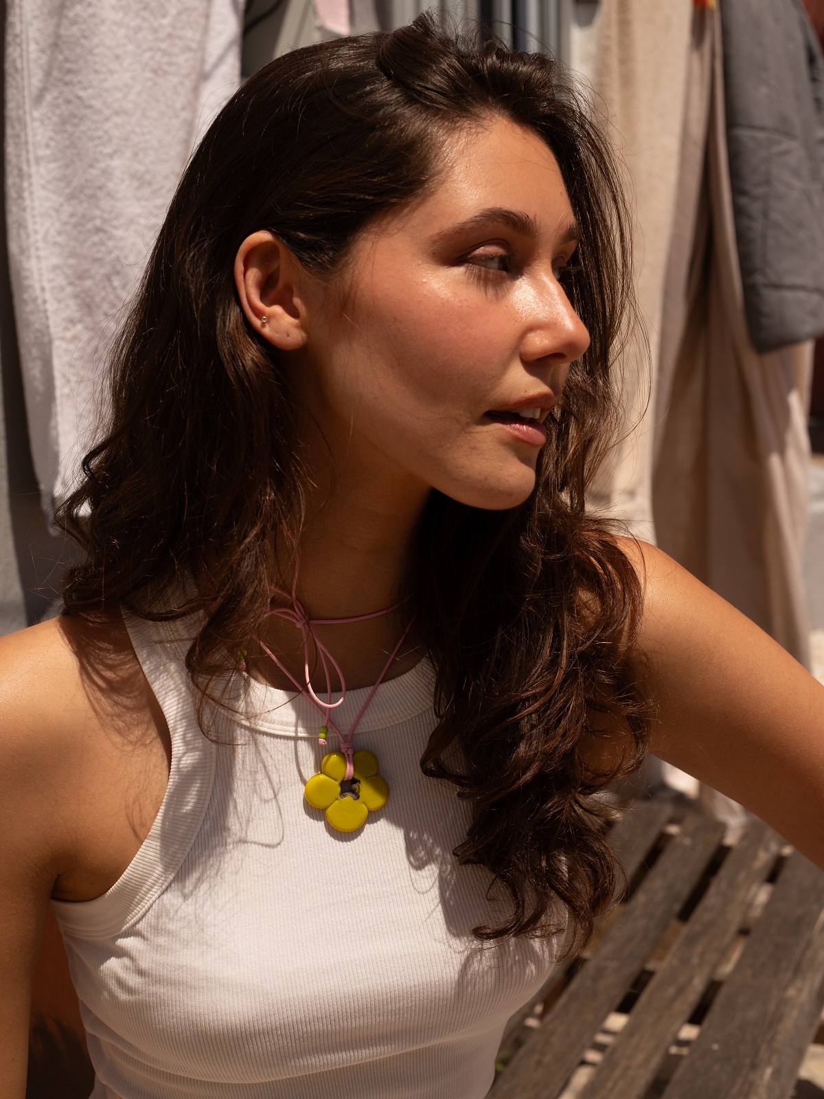 Naszyjnik i długie, wiszące kolczyki wykonane ze szklanych koralików w różnych kolorach świetnie wpasowują się w letni, festiwalowy klimat. Podobnie jak naszyjnik Bobo w kształcie kwiatka, który tym razem pojawił się w iście wakacyjnej, słonecznej odsłonie. Nie zabrakło oczywiście modeli wykonanych z pereł o organicznych, nieregularnych kształtach. Jedną z najciekawszych propozycji tej kolekcji jest zestaw trzech kolczyków, na który składa się barokowa perła, dwa ceramiczne kwiaty oraz dwa kółka do zawieszania tych elementów w dowolny sposób – w komplecie lub niesymetrycznie, na zasadzie kontrastu i zabawy.