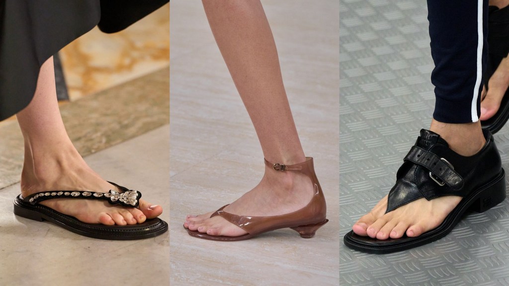 I nie mamy tu na myśli zwykłych klapek typu Havaianas (choć te są absolutnym wakacyjnym klasykiem, o czym od lat dowodzą stylowe Dunki). W tym sezonie na wybiegach zaroiło się od wszelkiego rodzaju sandałów z klamerkami, zdobionych kryształkami klapek i wariacji na temat półbutów z paskiem między palcami.