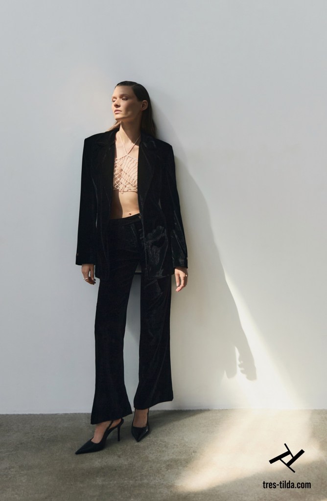 Druga kolekcja, którą Très Tilda debiutuje na polskim rynku, składa się z ośmiu sylwetek opartych na klasycznej elegancji. Zmysłowość i kobiecość harmonijnie łączy się z prostotą, a poszczególne modele zdają się z nostalgią nawiązywać do estetyki lat 90. Calvina Kleina czy Narciso Rodrigueza. W kapsule znalazły się między innymi gorsetowe sukienki do kolan, eleganckie garnitury oraz wieczorowe suknie z materiałów o szlachetnym połysku. Kolekcję uzupełniają jednoczęściowe stroje kąpielowe o ciekawej konstrukcji oraz biżuteryjne nakrycia głowy inspirowane stylem flapper girls z lat 20.