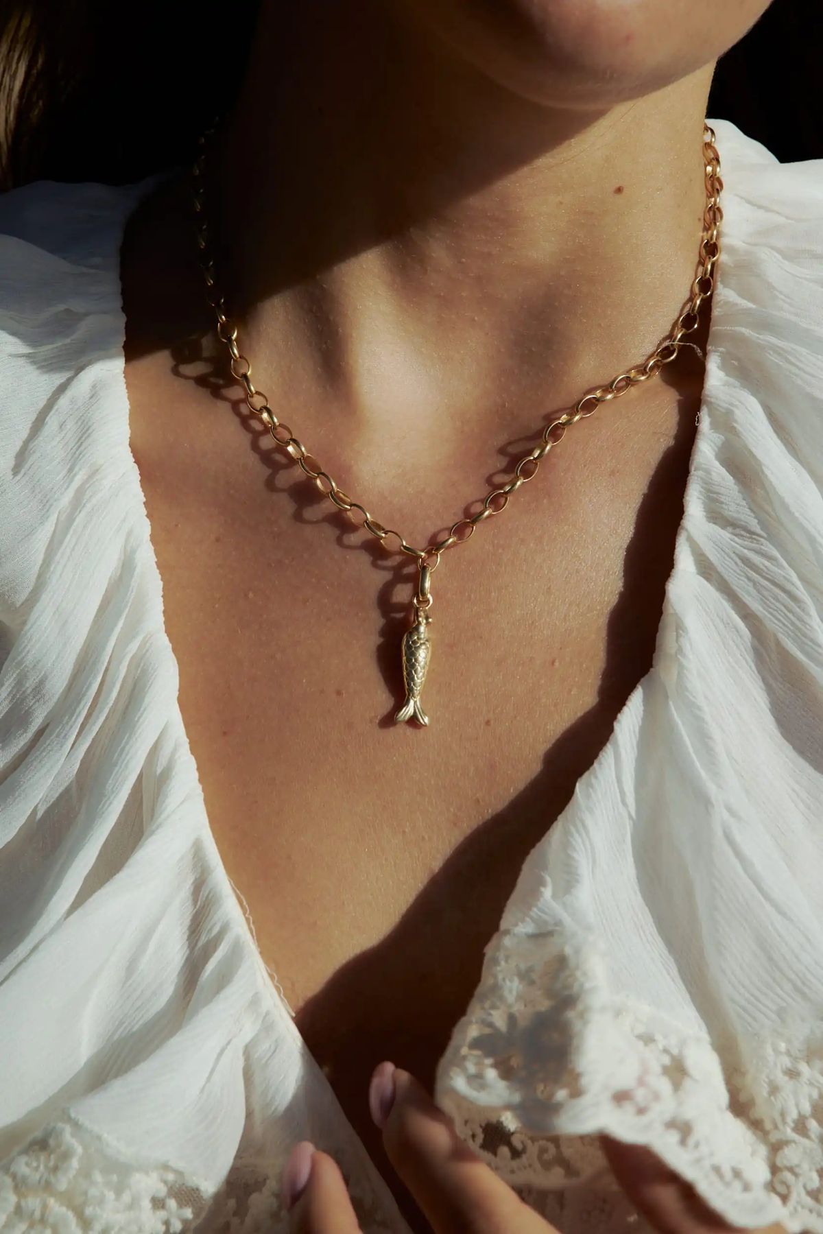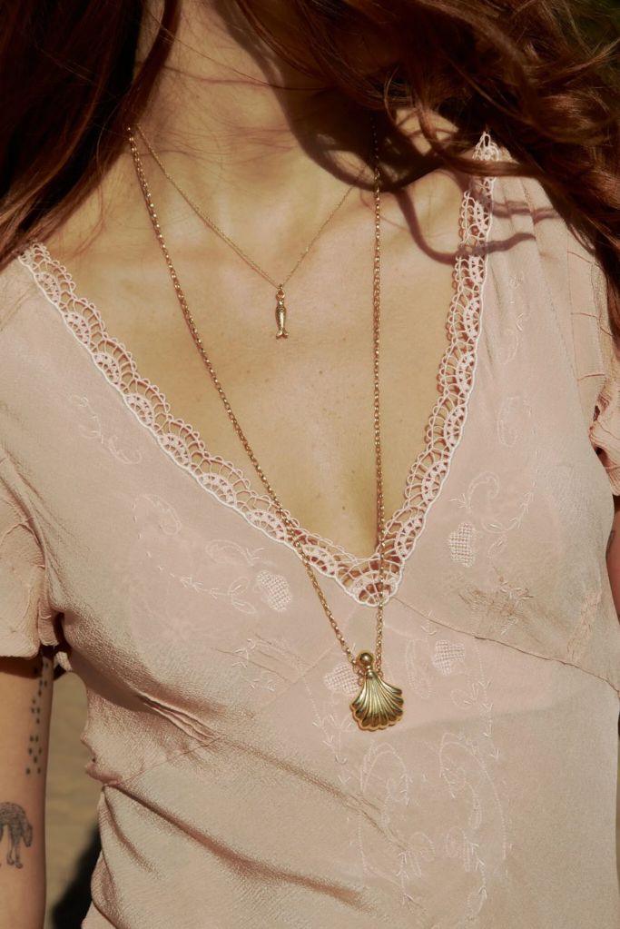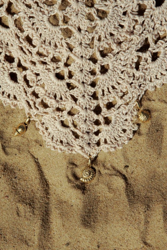 Oprócz muszelek w kolekcji zagościły również syrenki – w mitologii istoty przebiegłe i niebezpieczne, w baśniach i bajkach – symbolizujące wolność i kobiecą siłę. W biżuterii KOPI syrena przypomina niemal złotą rybkę, a jej kształt nawiązuje do kultowych projektów z kolekcji „Women”. Syrenie naszyjniki występują w dwóch wielkościach, a także w postaci zawieszek, które można również przypiąć do kolczyka czy nawet… koronkowej chusty, która uzupełnia kolekcję razem z uroczą dzierganą torebeczką.
