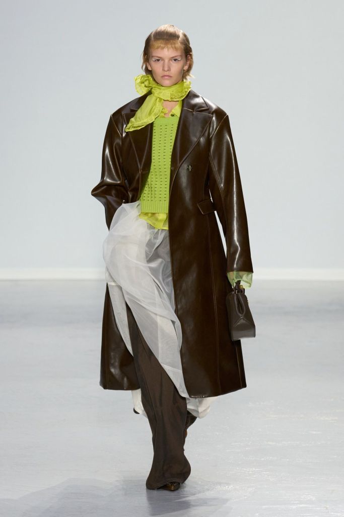 Długi skórzany płaszcz to absolutny, ponadczasowy klasyk. Najbardziej uniwersalne modele to te w czerni lub brązie, nawiązujące krojem do trencza. Projektanci proponują jednak odważne kolory, takie jak pomidorowa czerwień, militarna zieleń czy musztarda, a także eksperymentują z formą – na wybiegach pojawiły się płaszcze inspirowane latami 60., dwurzędowe, a nawet z kieszeniami w stylu safari.