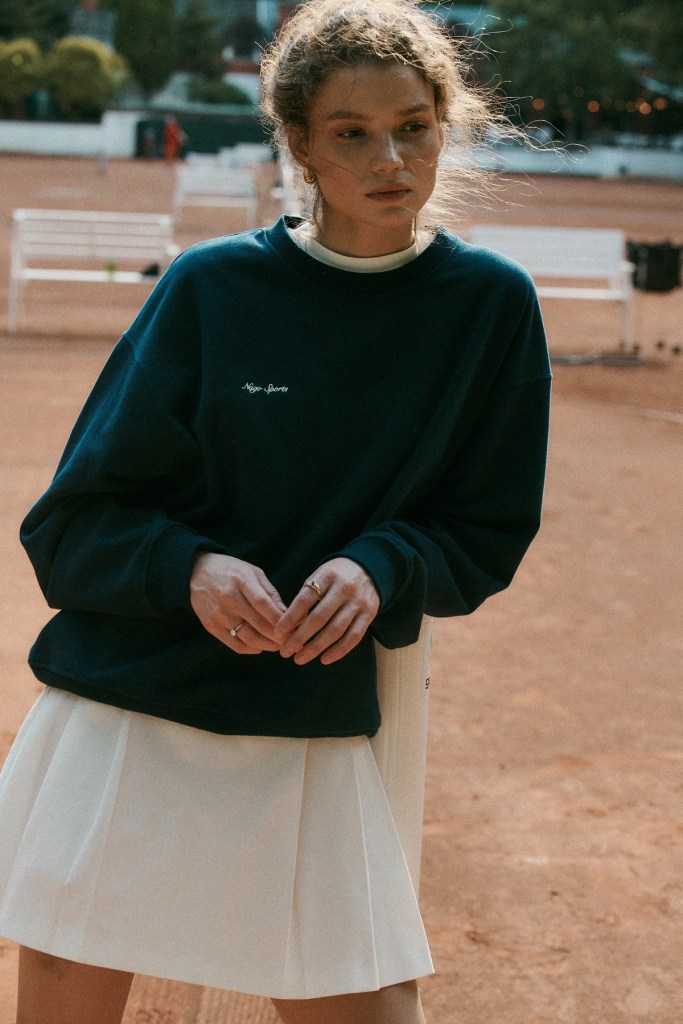 Nowa linia NAGO Sports inspirowana tenisem składa się z elementów tworzących spójną, harmonijną garderobę w stylu retro, przygotowaną z myślą o korcie. Znajdziemy tutaj zarówno wygodne bluzy – klasyczną, oversize oraz z suwakiem i dyskretnym haftem, T-shirty z lamówką, spodenki typu biker, wycięte na plecach body czy dresowe szorty. Obowiązkowo pojawił się sweter w stylu preppy, z głębokim dekoltem w kształcie litery V i kontrastowymi ściągaczami.