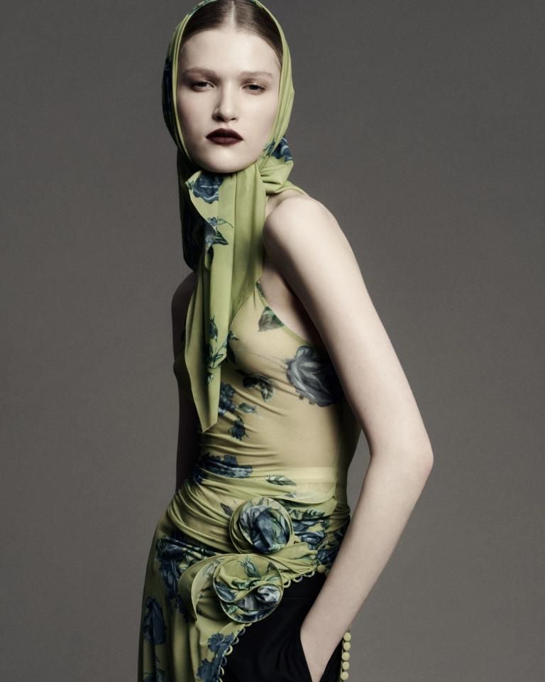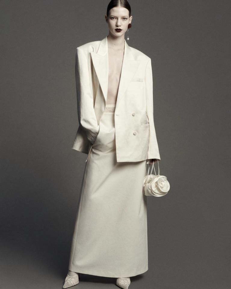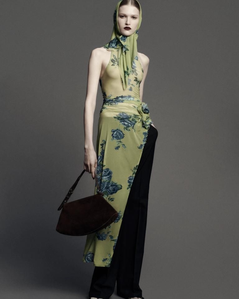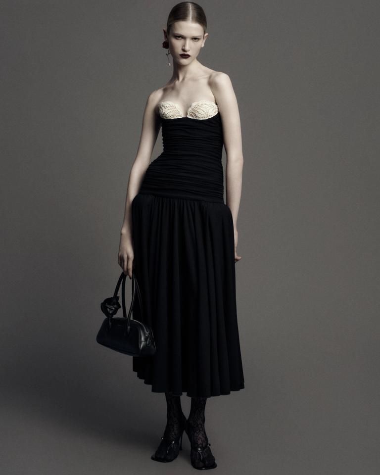 Magda Butrym odkrywa swoją mroczną stronę w kolekcji pre-fall 2025, w której słowiańska romantyczność kontrastuje z grunge’ową surowością. Kwiaty niczym wzory na porcelanie i delikatne koronki projektantka zestawia z męskimi formami i ciężkimi skórami, tworząc harmonię między buntowniczością i wyrafinowaniem.
