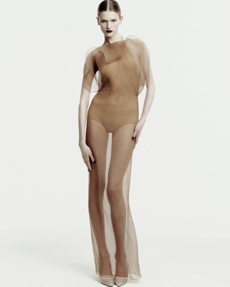 Projektantka nadal porusza się w słowiańskiej estetyce, eksplorując tym razem bardziej mroczne rejony. Osią kolekcji jest ciężka, mięsista skóra w kolorze gorzkiej czekolady. Magda Butrym kontrastuje ją z jedwabnym szyfonem drukowanym w róże w stylu vintage, koronkowymi rajstopami lub zmysłowymi drapowaniami przywodzącymi na myśl antyczne rzeźby.