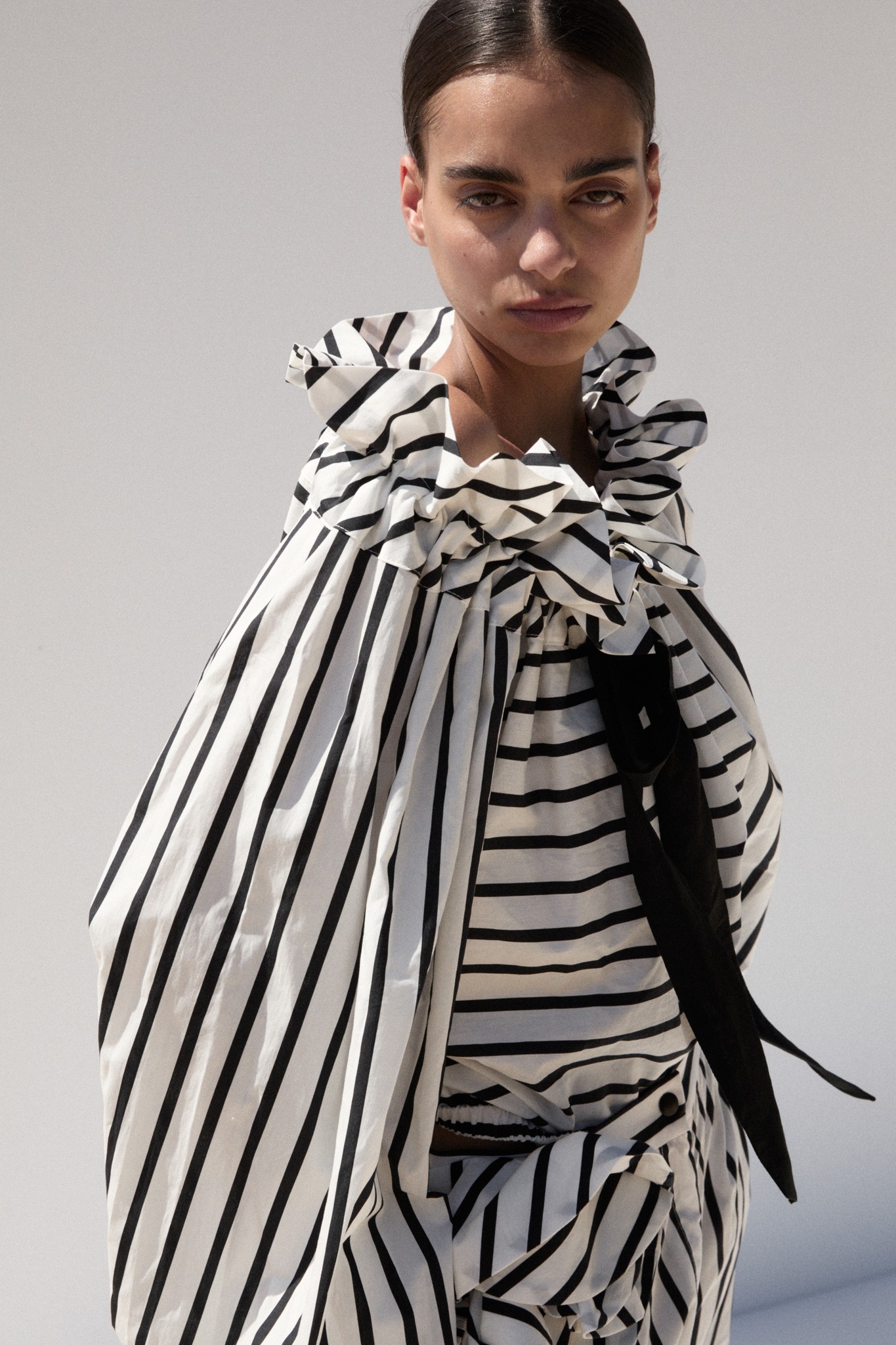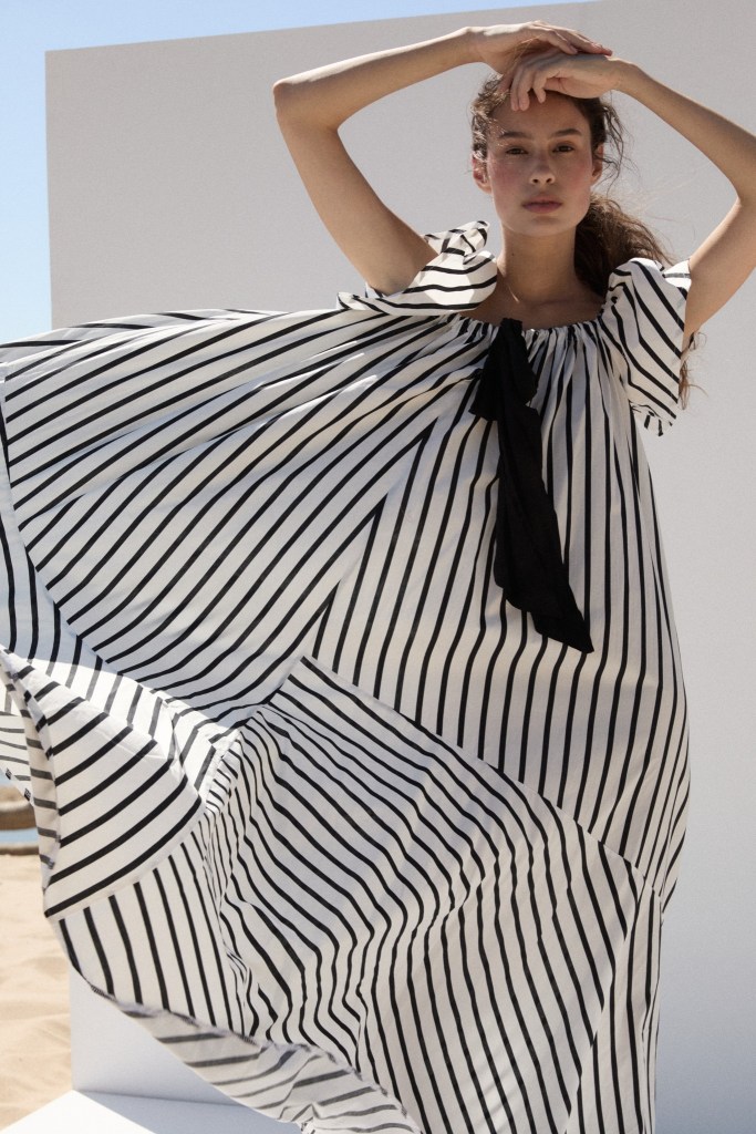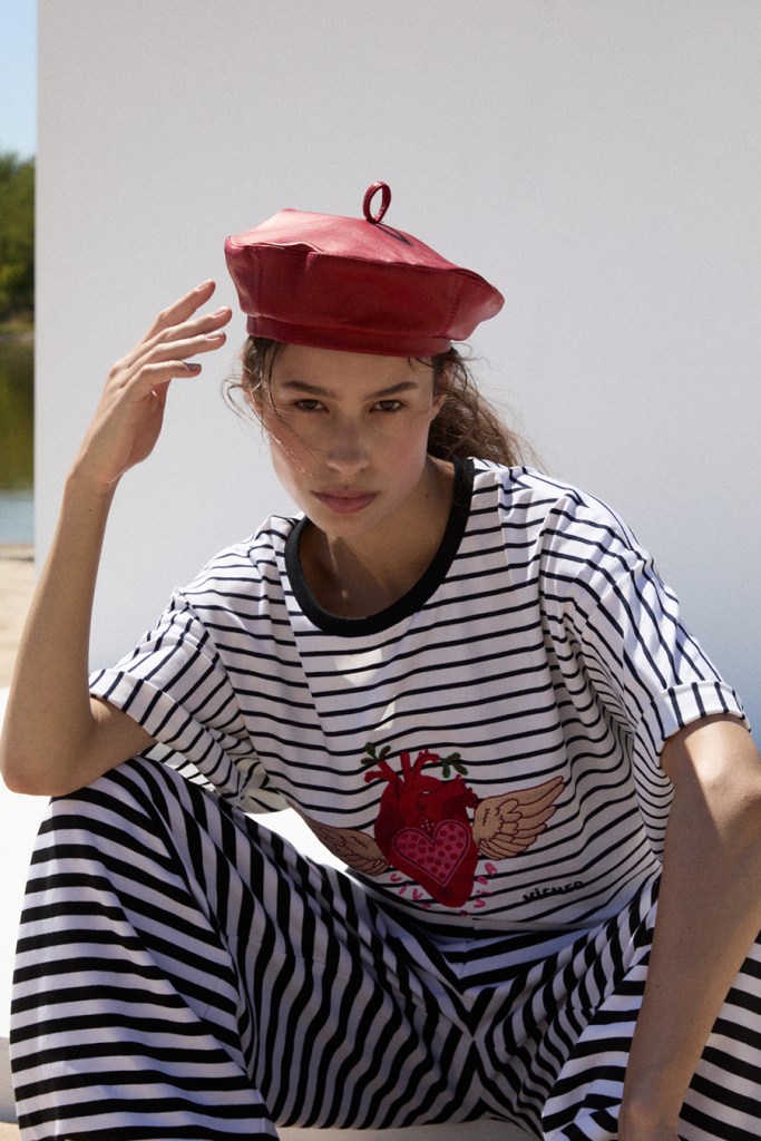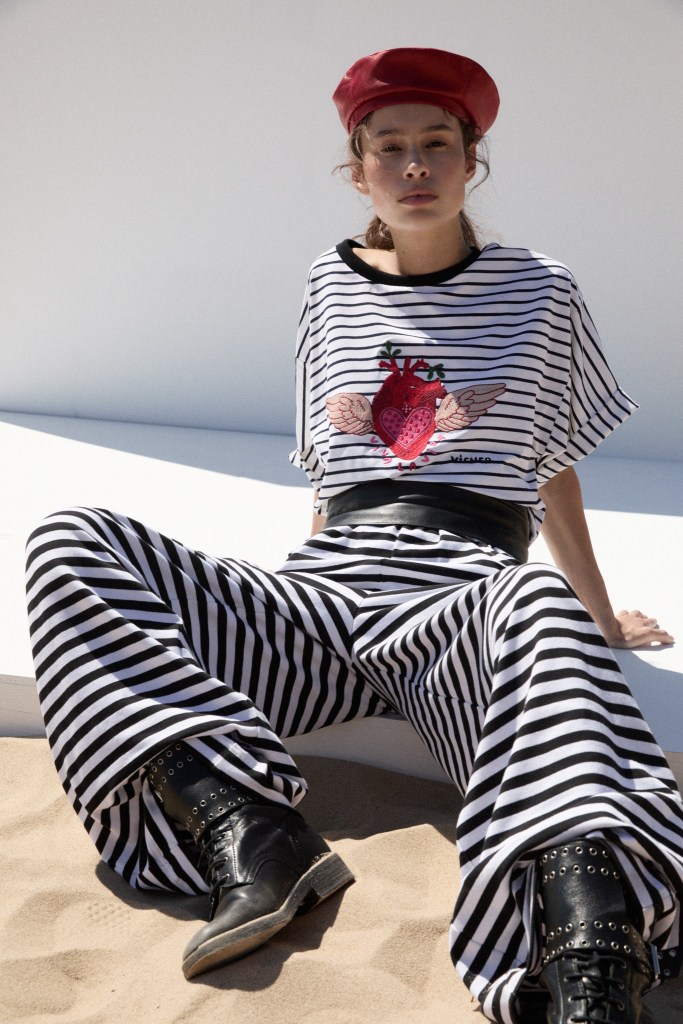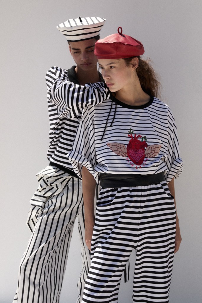 Wicher znów wieje w zamaszyste suknie i spódnice maxi, tym razem zadrukowane w graficzne paski i odręczne rysunki. Marynarskie inspiracje w oczywisty sposób nawiązują do wakacyjnej estetyki – nie tylko paski, ale i berety czy żakiety z okazałym kołnierzem. Pasiaste ubrania występują zarówno w formie bluzek z marszczonymi falbanami, jak i casualowych bluz i T-shirtów.