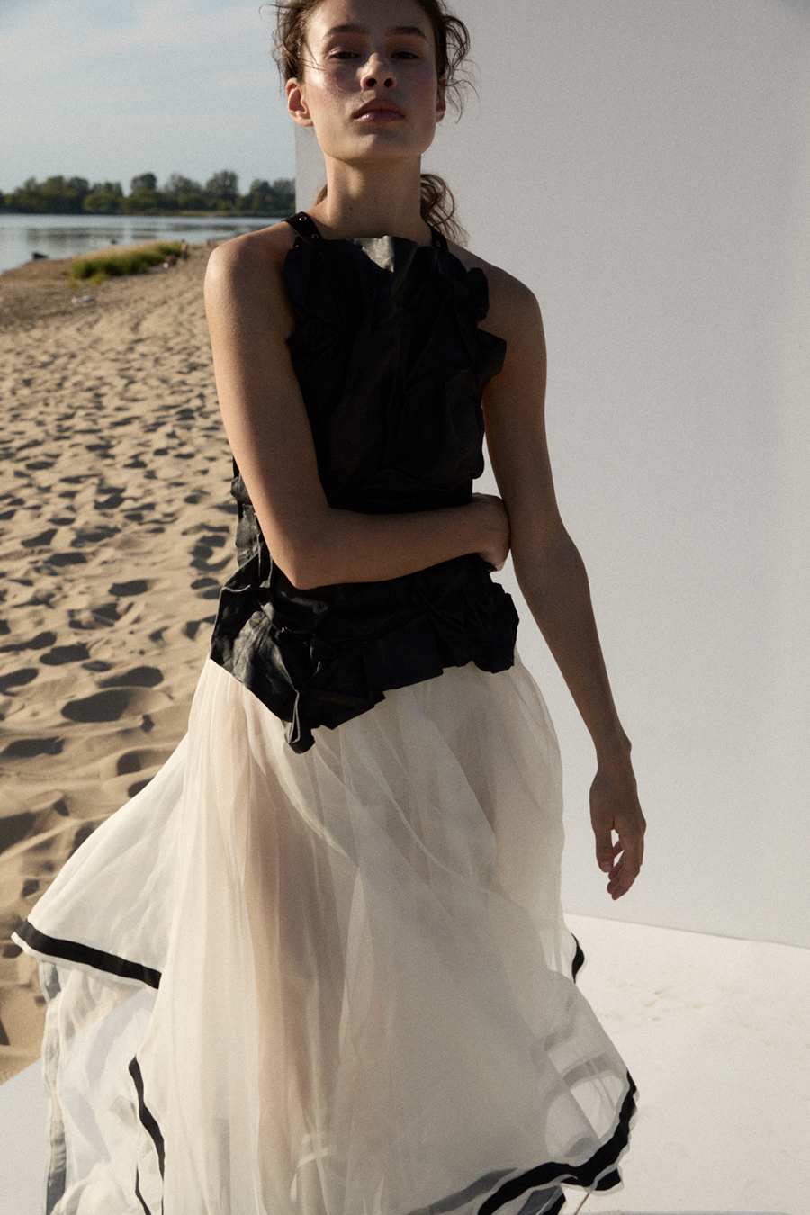 „Każdy detal kolekcji jest opowieścią, wspomnieniem, emocją, a każda sylwetka to fragment portretu kobiety, która nie ubiera się w modę, lecz nosi doświadczenie” – mówi Inez Vicher, dyrektorka kreatywna marki. – Nie znajdziesz tu imienia, bo to nie hołd, nie rekonstrukcja. Kolekcja czerpie z symboliki, ikon przeszłości, lecz unika imion. To transformacja – kobiecości, pamięci, i wnętrza.