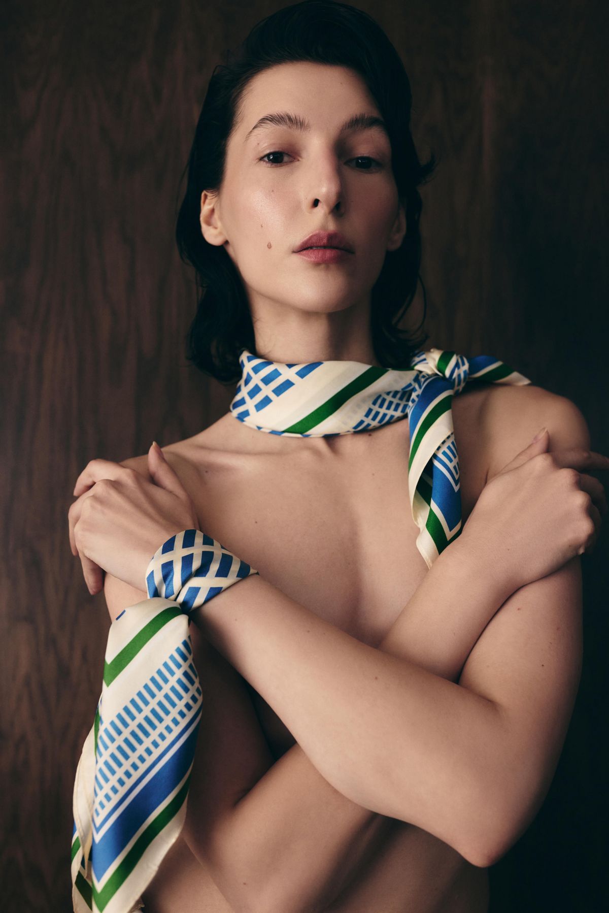 Jubileuszowa kolekcja jedwabnych apaszek to hołd dla minimalizmu, prostoty i funkcjonalności charakterystycznej dla stylu mid-century modern, mającego swój rozkwit w połowie XX wieku. Czystość linii i oszczędność formy zostaje przełamana graficznymi wzorami w mocnym kolorze, przywodząc na myśl linie nanoszone przez architekta na deskę kreślarską. Apaszki z nowej kolekcji zadrukowane są dwustronnie, dzięki czemu otrzymujemy dwie różne kolorystyki, a co za tym idzie, więcej możliwości stylizacji.