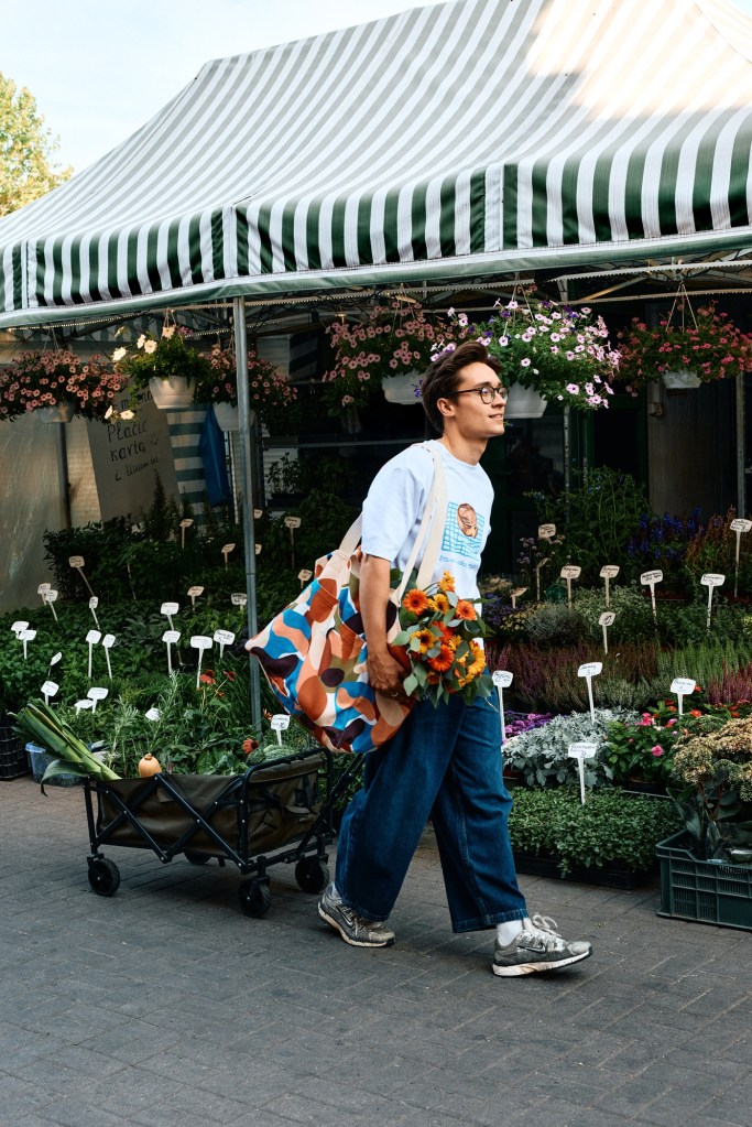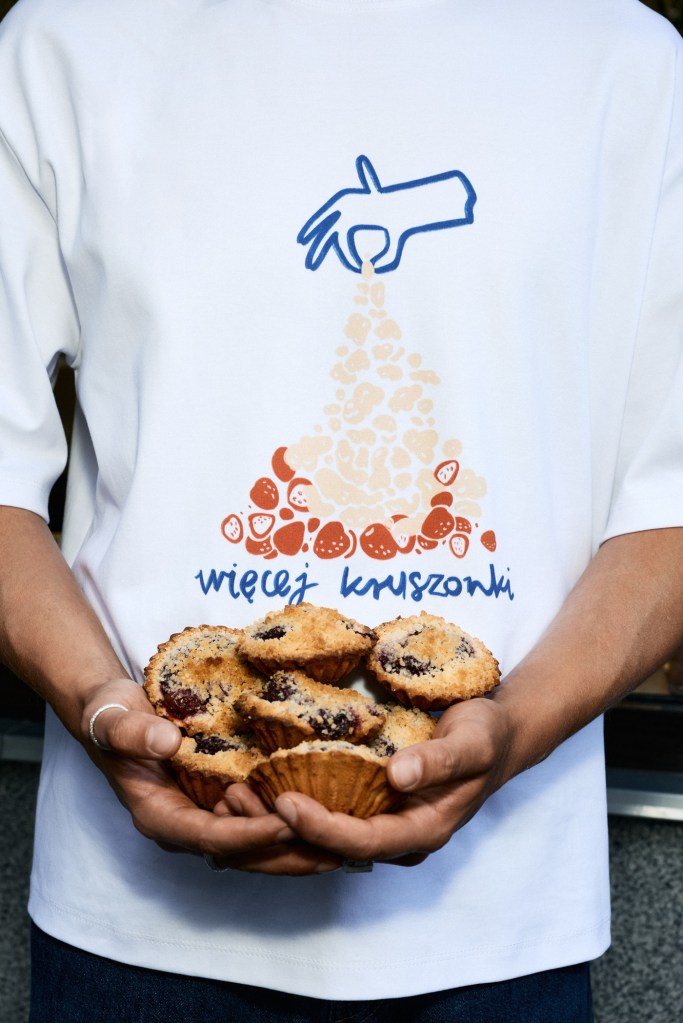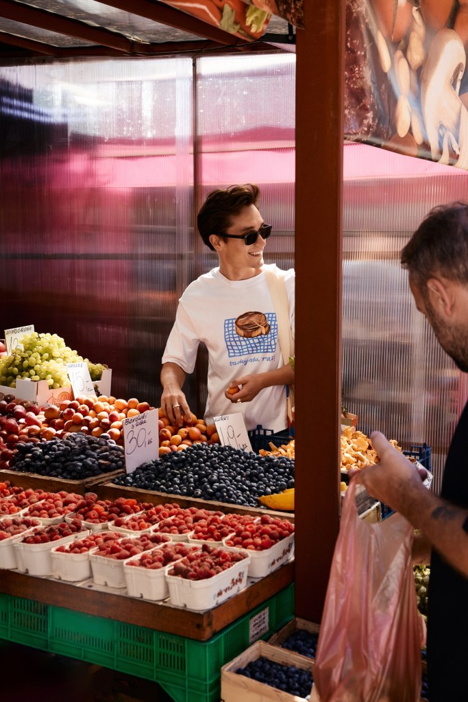 Kolekcję uzupełnia oversize’owa dresowa bluza „Talerzyk” oraz kolorowa torba z praktycznymi uszami – długimi do noszenia na ramieniu i krótkimi do ręki – która pomieści wszystkie dobroci z lokalnego warzywnego bazarku.